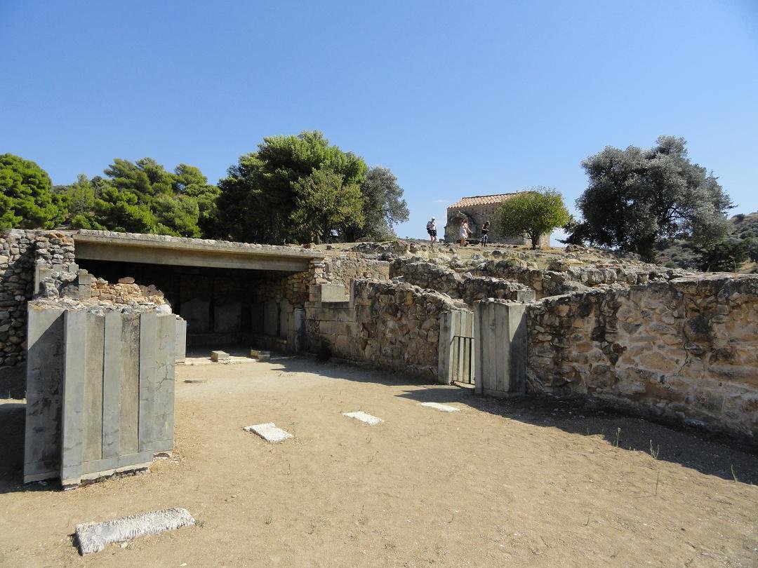 Wat verder nog is veranderd is dat er in de loop van de jaren een hoop meer opgegraven is bij het Agia Triada paleis. Toen ik er voor de eerste keer kwam in 1975 werd het nog bestempeld als een Mino�sche zomervilla van de heersers van het drie kilometer verderop gelegen Festos (Phaestos) paleis, maar naarmate meer van Agia Triada werd blootgelegd (in 1976 is men verder gaan graven), kwam ook de werkelijke omvang van het complex naar boven en is men gaan twijfelen aan de funktie. Toen er ook nog mooiere fresco's werden gevonden dan die die al eerder bij Festos waren opgegraven, werd zelfs de theorie opgeworpen dat het paleis dat in Agia Triada is gevonden, na zijn bouw in 1550 voor Christus, de werkelijke zetel van de Mino�sche vorst zou zijn geweest en dat Festos een meer religieuze bestemming had gekregen. Zomervilla of klein paleis, Agia Triada blijft een interessante plek om te bezoeken.