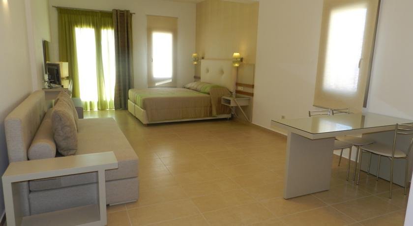 Situated along the Bay of Agios Ioannis, Bellissimo features spacious rooms with private verandas or patios. There is a covered, sea-facing terrace and a swimming pool. With air conditioning and a sitting area, all rooms at Bellissimo Resort come with a refrigerator, safe and TV. Each private bathroom is decorated with sea shells and has a hairdryer. A buffet breakfast is served daily on the terrace of the restaurant, which overlooks the water and the mountains in the background. There is an on-site mini market to buy snacks. The Agios Ioannis Beach and Kapari Beach are situated within a 10-minute walk from the property. Buses to and from Mykonos town, 4 km away, leave within a 2-minute walk from the property. Car rentals and airport shuttles to Mykonos Airport are bookable at the reception. Free private parking is available. Check availabilities and prices & book the Bellissimo Resort in Agios Ioannis Mykonos - click here. |