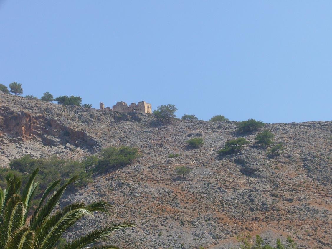 Agia Roumeli is ook de plek van de antieke Dorische stad en religieus centrum Tarra waarvan de restanten ten oosten van het dorp liggen. Tijdens de Romeinse overheersing was het een onafhankelijk stad die zijn eigen munten sloeg (met aan een kant een geit en aan de andere kant een bij). Ook waren er grote tempels in Tarra te vinden. Tijdens opgravingen op de kust bij het moderne dorp Agia Roumeli werd de site van de begraafplaats van Tarra gevonden. Het is waarschijnlijk dat ook de haven van Tarra hier in de omgeving was, maar in de tussenliggende tijd is kustlijn is veranderd als gevolg van aardbevingen en door andere natuurlijke oorzaken. In het Archeologisch Museum in Chania is een grafsteen te zien die in het gebied van Agia Roumeli is gevonden, waarop de typische Mino�sche dubbele bijlen zijn afgebeeld, waaruit men concludeerd dat de Mino�sche godsdienst nog een tijd lang heeft voortgeduurd nadat zijn beschaving al was verdwenen. Boven het dorp op een heuvel zijn na een pittige klim nog de restanten te zien van een Turks fort. De wandeling duurt ongeveer 45 minuten (heen een uur en terug een half uur) en is niet echt heel erg moeilijk, maar gaat op sommige stukken wel vrij stijl omhoog. Vergeet niet om water mee te nemen. Vanaf het fort is er prachtig uitzicht op de Samaria Kloof, het dorp Agia Roumeli, diverse stranden en de zee. Als je nog anderhalf uur verder loopt komt je bij een tweede Turks fort uit. Dit fort is minder goed bewaard gebleven. |
