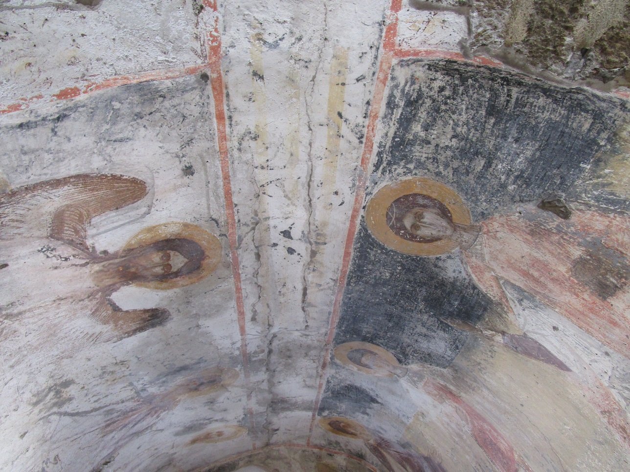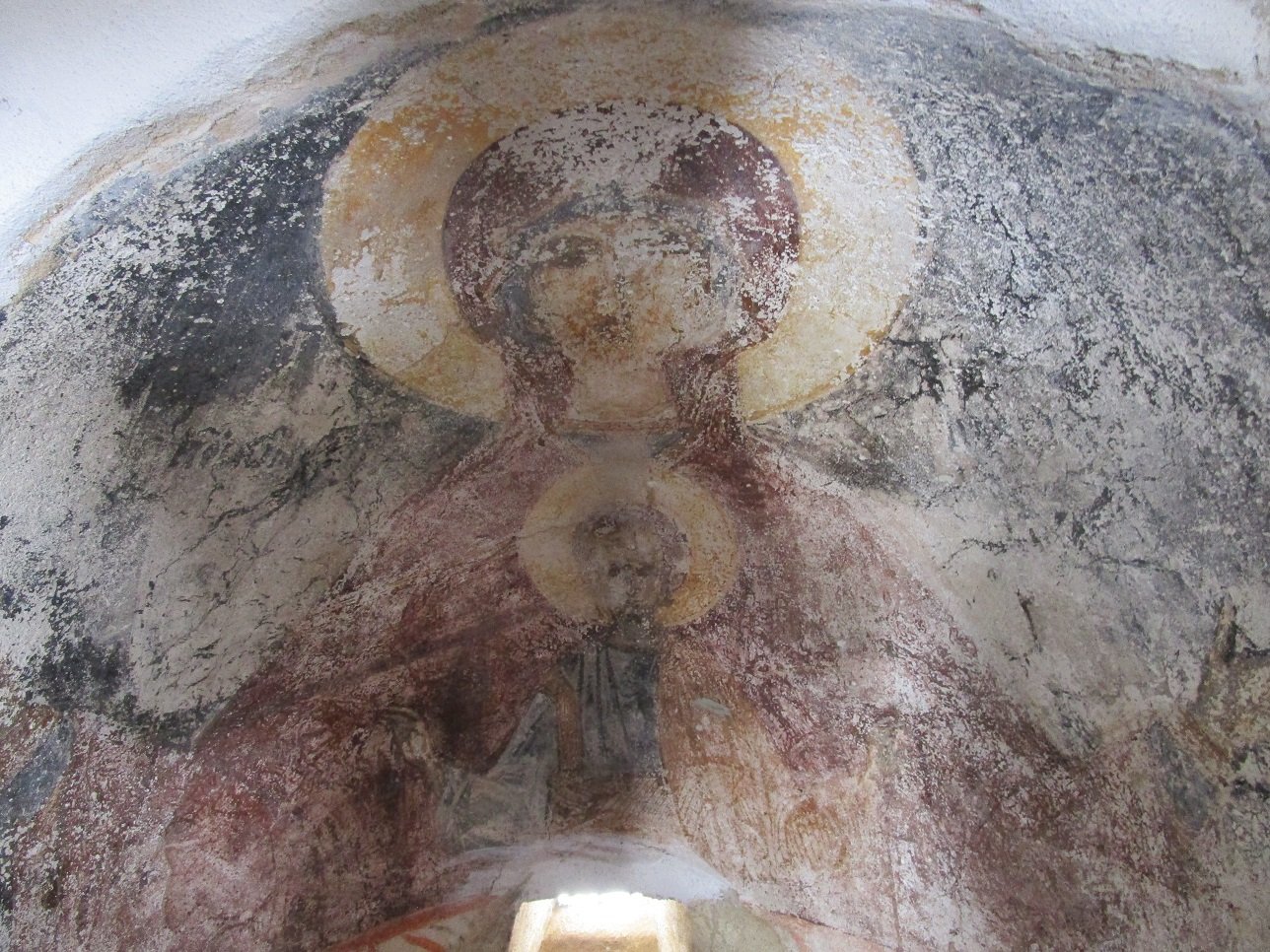 The small Byzantine church of Agios Ioannis is located just southwest of the capital Skyros Chora and can be reached via the exit from the town to the Agios Dimitrios monastery. This road is indicated with a sign. On the route to the church and the monastery you will encounter a beautiful view of Skyros City and the sea. A moment to stop and take a look or take a photo. You end up at a (new) artificial water reservoir that is surrounded by an unpaved road. Nearby is the small Byzantine Agios Ioannis church with inside well-preserved frescoes of Jesus and the Virgin Mary with child. We were here in 2018 and visited this church with a guide. The door was open.