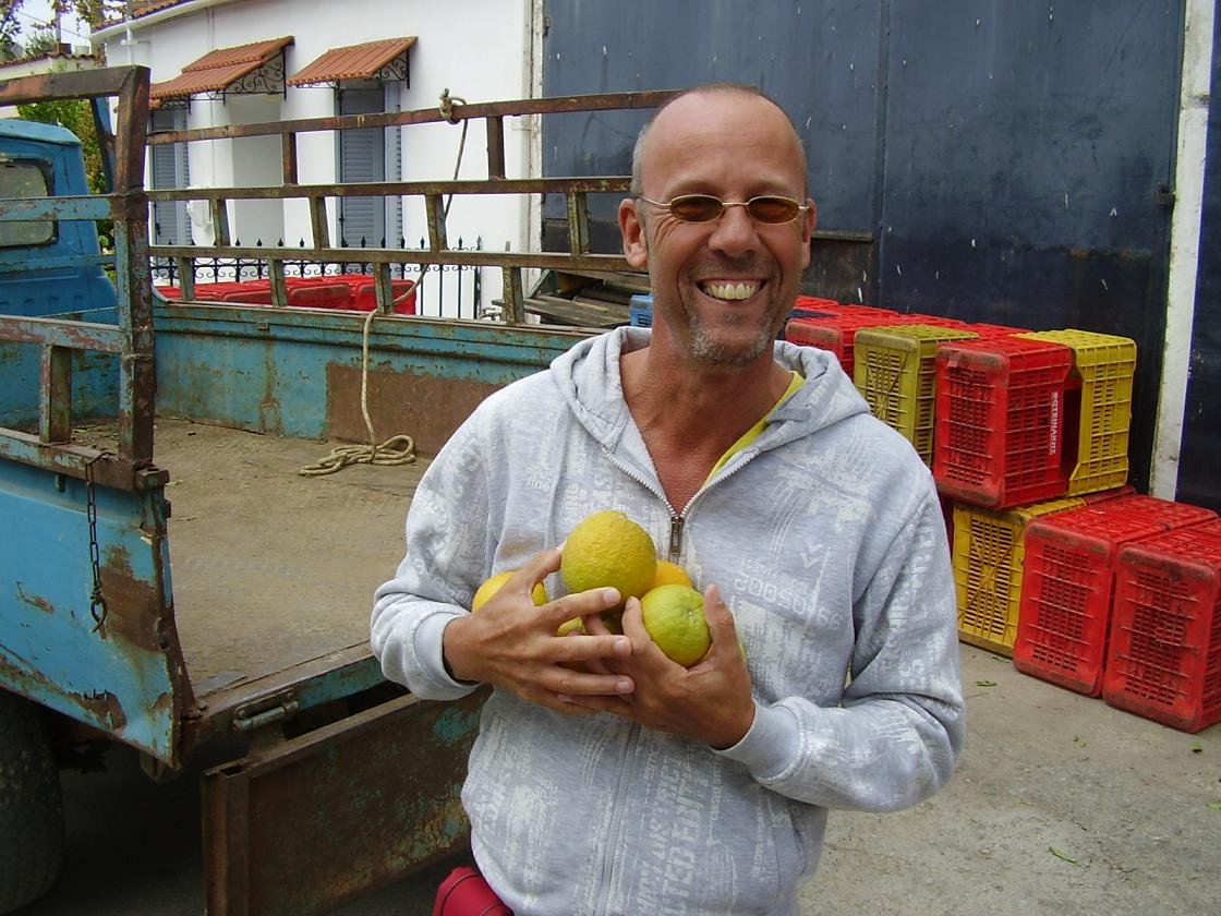 Als je vanaf de kerk de straatjes van het dorp inloopt kom je langs allemaal huizen waarvan veel huizen sinaasappel- of citroenbomen in de tuin hebben staan. In het dorp is zelfs een heus fabriekje waar sinaasappelsap wordt gemaakt. De kratten met sinaasappels staan aan de kant en je kunt zien hoe ze worden gewassen om daarna in de machines te verdwijnen. Van een aardige vrouw die hier werkte kregen wij nog een hele stapel sinaasappels mee. De grond rondom Alikianos is heel erg vruchtbaar en het dorp wordt dan ook omringd door veld na veld met duizenden sinaasappelbomen.
