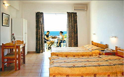 Een mooie, informele accommodatie met een prachtig uitzicht op de haven van van het vakantieoord Bali. Sofia Hotel - Mythos Beach ligt op 50m van een zandstrand en de haven van Bali (voor de ligbedden en parasols geldt een toeslag). Het complex bestaat uit twee hotels (Sofia en Mythos Beach) die nu als 1 hotel opereren. Het Aparthotel Sofia - Mythos Beach heeft 1-persoonskamers, tweepersoonskamers en familie-appartementen. Bij het hotel behoren twee zonneterassen, een zwembad, een restaurant en een snackbar. Er zijn verschillende soorten kamers, studio's en appartementen te huur in dit hotel. De studio's bestaan uit een gecombineerde woon-/slaapkamer met een kitchenette en ze hebben een priv� badkamer. De appartementen hebben dezelfde inrichting, maar hebben als extra een afzonderlijke slaapkamer. Check beschikbaarheid en prijzen & boek dit hotel in Bali op Kreta - klik hier. |