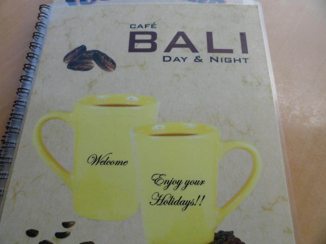 Het Bali Cafe ligt op de weg naar beneden als je op weg bent naar de strandjes die bij het haventje van Bali liggen. Het is tevens een bakkerij, dus de verwachtingen waren gespannen. Ze verkopen er pizza's, wafels, broodjes, club sandwich, broodjes en ontbijtjes. Wij bestellen een cappuccino en een club sandwich. De cappuccino wordt niet geserveerd met warme opgeklopte melk maar met slagroom uit een spuitbus. Er is geen glas water bij. De patatjes zijn knapperig en smaken best goed maar de club sandwich daar zit niet veel smaak aan. Een beetje teleurstellend. Ons oordeel: een 6,5 uit 10 |