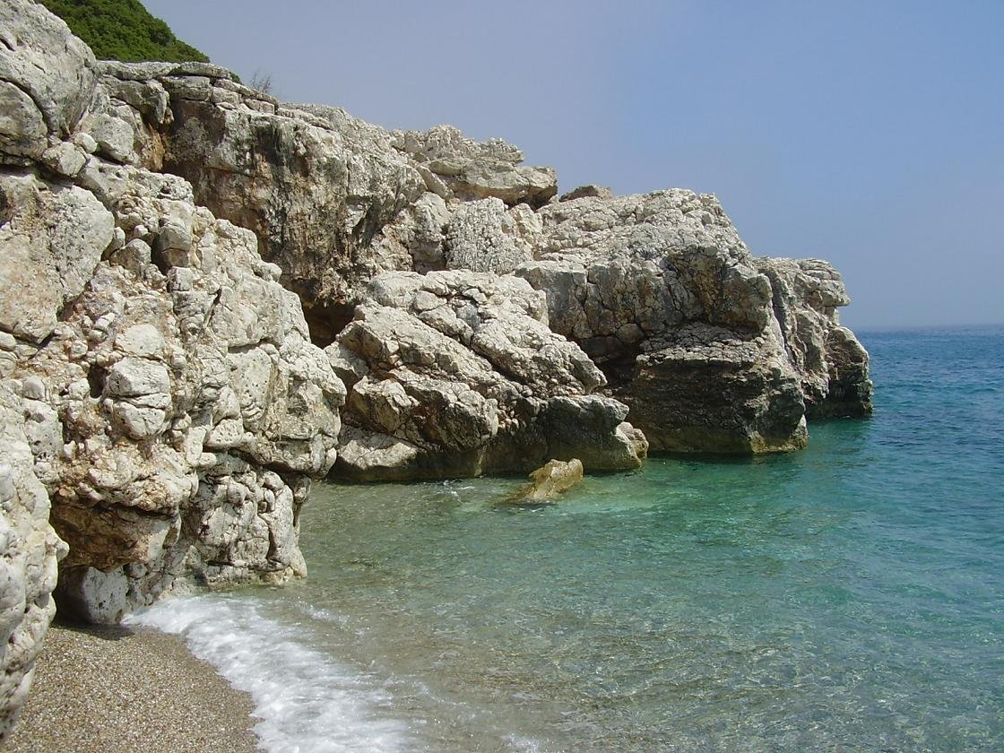 Next to Balos beach is another beautiful secret sandy beach, which is our favorite beach of the island - I believe sometimes it is referred to as Komeika Beach. In 2010 when we visited this beach and found it deserted (again...) we had a view of hundreds of dolphins. On the beach there used to be a wooden construction made by fishermen, where you could sit in the shade, but in 2010 it was removed. Now you can only find shade at certain times of the day and also in a small cave that is on the beach. This beach (sand and some pebbles) is close to the Panorama Villas (see hotel section) and next to it is yet another beach with a beautiful rock in front of it. We tried to get to this beach but we were not succesful. |