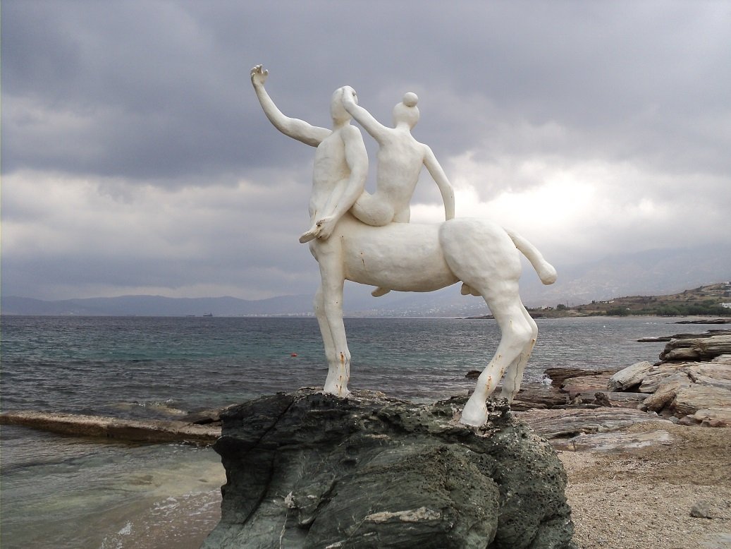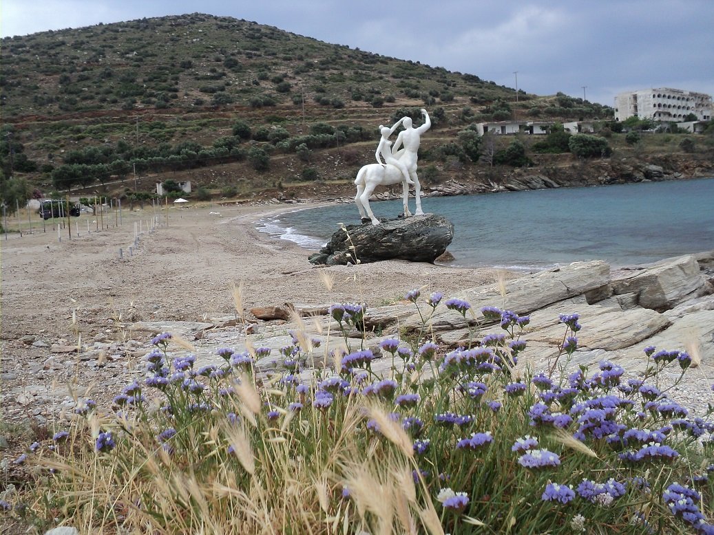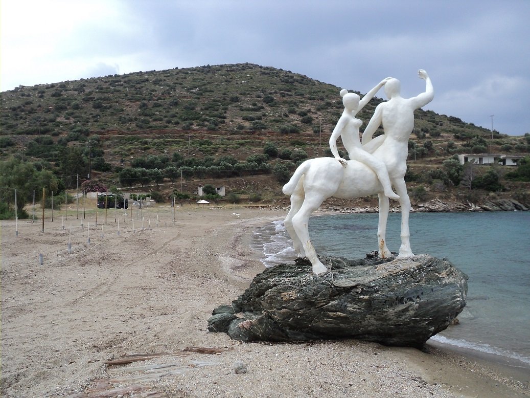 On Bouros beach is the beautiful statue of the centaur and the nymph.