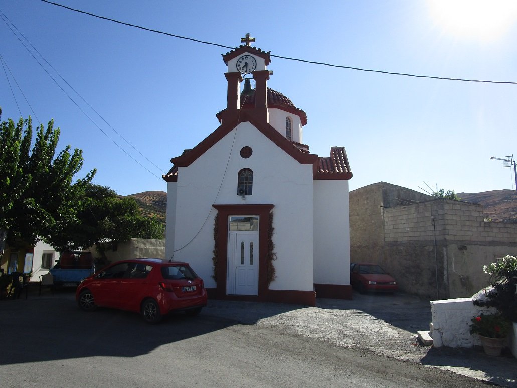 Chondros is een klein en traditioneel Grieks dorpje in het zuiden van het eiland Kreta op de route van de stranden van Keratokampos naar Ano Vianos. Er wonen ongeveer 200 mensen in Chondros. Veel van de huizen in het dorp zijn in verval geraakt. In het dorp Chondros staat deze witte kerk met rood koepeldak. Hij heet de Agios Fanourios kerk. In Chondros staat nog een tweede kerk die iets groter is en de Panagia Agios Ioannis heet. Deze is te vinden aan de westkant van het dorp.
