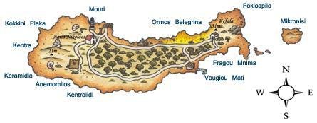 The Agios Nikolaos church dates from the 13th century and is well preserved. Also on the west side of the island are Byzantine salt pans, Minoan ruins, remains of Roman graves and a lighthouse.