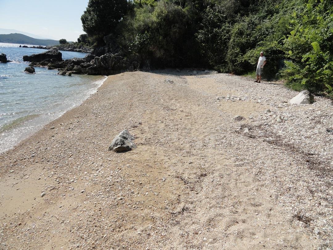 Corfu stranden: Glyko Beach, Limni Beach, Klimatia Beach, Liniodoros Beach - Behalve Rovinia Beach liggen er in de omgeving van Liapades nog enkele anders stranden. Sommige zijn een beetje moeilijk te vinden, maar wel te voet bereikbaar, andere kun je alleen bereiken met een bootje. De wandelgids die wij hadden uitgeprint was niet van veel nut want er was het een en ander veranderd en eigenlijk leek hij alweer verouderd. Dus gewoon op goed geluk af en toe eens een pad inslaan kan ook. Wie al te ver doorloopt wandelt uiteindelijk op een doodlopend pad en moet weer terugkeren. |
