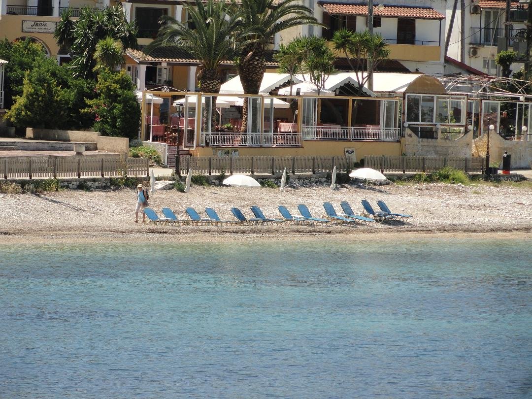 Corfu stranden: Kassiopi en Avlaki - Kassiopi is een vakantiestadje in het noordoosten van Corfu met een mengeling van traditionele en toeristische elementen. Er zijn bars en disco's maar er zijn ook nog de ouderwetse Griekse vissersboten die uitvaren om vis te gaan vangen. Vanwege zijn nachtleven trekt Kassiopi voornamelijk jonge reizigers aan. Echt hele grote hotels zijn hier (nog) niet. De kerk van Kassiopi staat volgens zeggen op de plek waar vroeger een tempel stond die aan Jupiter was gewijd, en op een van de landtongen staat de ru�ne van een kasteel uit de 13e eeuw. In Kassiopi zijn verschillende kiezelstranden waarbij je soms over een landtong moet wandelen om ze te bereiken. Op de stranden dichtbij het centrum van het dorp kun je watersporten beoefenen. Het dorp heeft een busverbinding met Corfu stad. De rit duurt iets langer dan een uur. Naast het strand van Kassiopi ligt het wat minder bekende strand van Avlaki, dat 800 meter lang is en wat rustiger. Op deze plek komen het meest de Grieken (weekend). Er zijn een paar taverna's en er is ��n bar. Winkels zijn er niet bij het strand van Avlaki. Wat mij betreft behoren de strandjes van Kassiopi tot de schilderachtigste van het eiland. Als je vanaf de haven de weg volgt dan kom je vanzelf langs allerlei prachtige baaien met hagelwitte kiezelstranden en prachtig blauw water. Als je door blijft lopen kom je na 5 stranden (nog meer op een uitloper) uiteindelijk bij het grotere hoofdstrand, wat eigenlijk het minst aantrekkelijke strand is van allemaal. Wie vanuit de hoofdstraat naar de haven loopt en daar rechtsaf slaat kan een pad vinden dat naar nog meer kleine strandjes gaat. Hier is het rustiger en op een van deze strandjes hebben wij ook in naturistenstijl in de zon gelegen (op basis van wie het eerst komt wie het eerst maalt). |