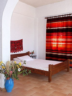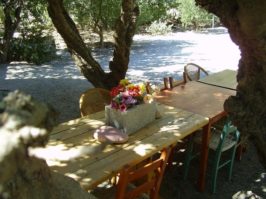 Deze appartementen liggen in het zuidoosten van Kreta, op een half uurtje rijden van Ierapetra af, en ze worden gerund door Loes en Peter. Ik was er al een keer eerder geweest alleen om te kijken, omdat ik was getipt door diverse mensen die het er vreselijk leuk vonden en er regelmatig terugkeerden. Toen heb ik alleen Peter maar gezien, en vond het een heel aardige vent. Een andere reden om te gaan kijken was het feit dat er voor het appartementencomplex een groot en rustig strand lag waar ook een gedeelte is waar naturisten een plekje hebben gevonden. Helemaal achterin op het strand daar is het zalig vertoeven, beschermd achter de rotsjes en met zand op de boden van de zee, zodat je er heel makkelijk in en uit kunt gaan. Afijn, reden genoeg om nog eens terug te gaan naar Tania Appartementen. In oktober 2008 heb ik even mee kunnen proeven van het geweldige sfeertje daar. Loes en Peter zijn twee schatten die het woord gastvrijheid hoog in het vaandel hebben staan. Bovendien zijn ze heel relaxt en hebben ze allebei een aanstekelijke lach en een gezonde dosis humor in huis. Onze studio was ruim, schoon en verder simpel ingericht, maar met heerlijke bedden (geslapen dat ik er heb.....!!), genoeg kastruimte (gebruiken wij nooit want we hebben altijd alleen maar een beetje handbagage - maar voor de liefhebbers), een keukentje met een zithoek erbij en een badkamer natuurlijk (met warm water!). Natuurlijk hadden we ook een lekker terras met een zitje. Een perfekt plekje voor een kop koffie of een ouzo. Niks om over te mopperen. Verder hingen er zulke goede vibraties in en om het terrein. Het straalde eraf dat de mensen het naar hun zin hadden en iedereen was heel vriendelijk met elkaar. In een korte tijd hebben we een aantal erg leuke mensen ontmoet. Aan het onbijt wordt een hoop zorg besteedt en Loes maakt er een feestje van, met speciale dingetjes, verse ingredi�nten en knapperig vers brood.