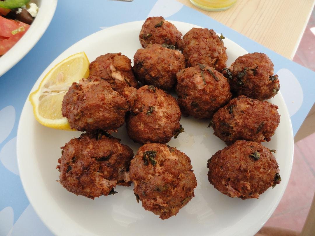 De kleine taverne die bij het Kakkos Bay Hotel zit heeft een beperkte kaart met Griekse gerechten, maar het is er wel goed, de mensen zijn er erg aardig en het is er goedkoop. Wij bestellen een Griekse salade, gehaktballetjes en tzatziki. Alles smaakt eigenlijk prima. De feta kaas is erg lekker en het brood vers en knapperig. We krijgen gratis yoghurt met geconfijte vruchtjes toe. Our verdict: an 8 out of 10 |