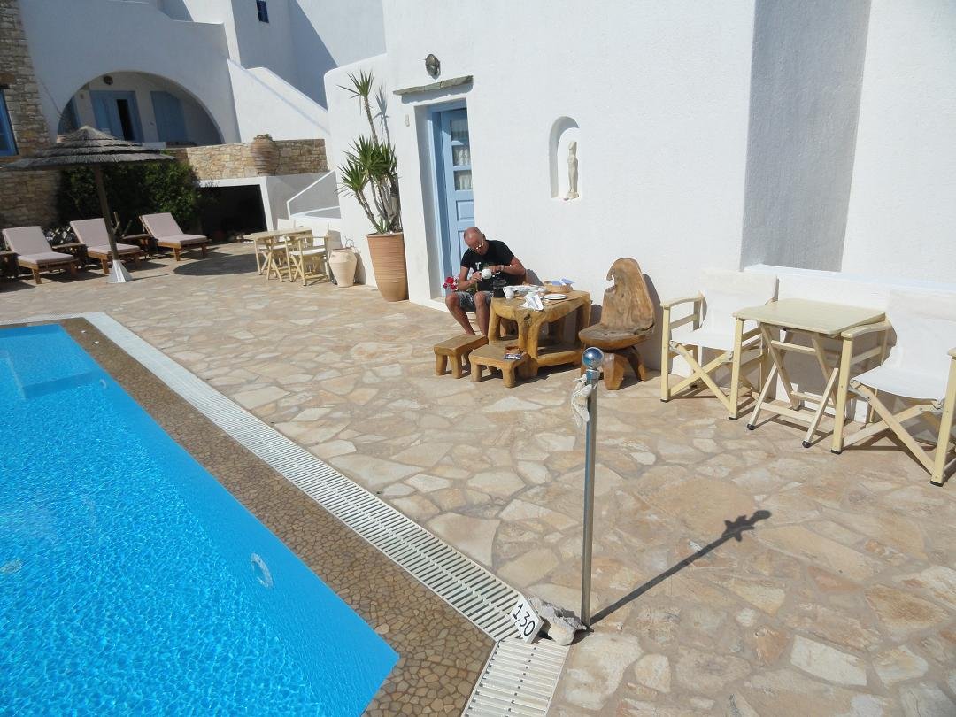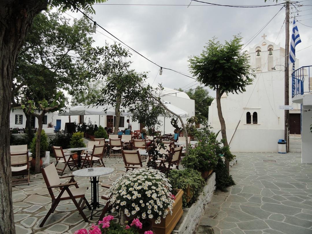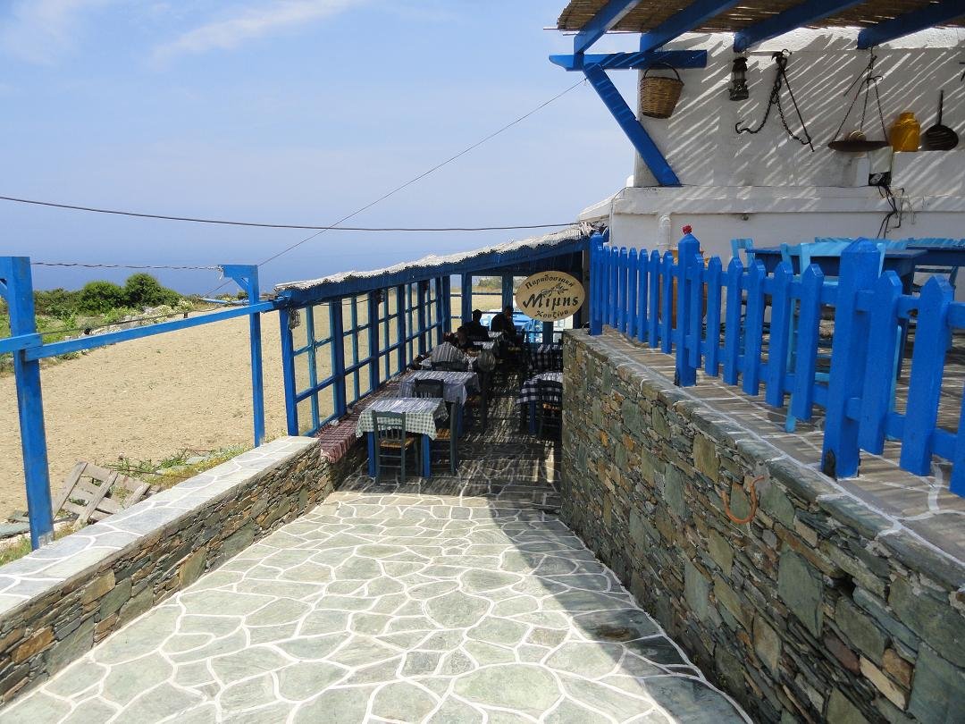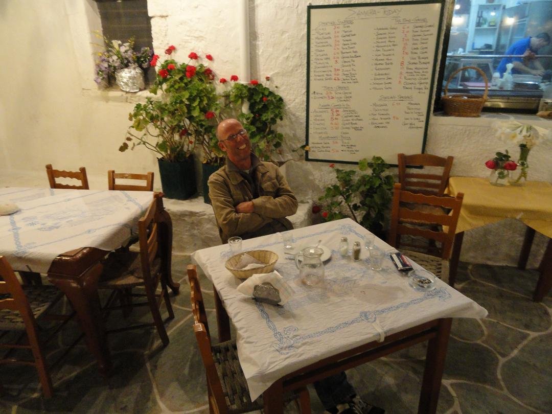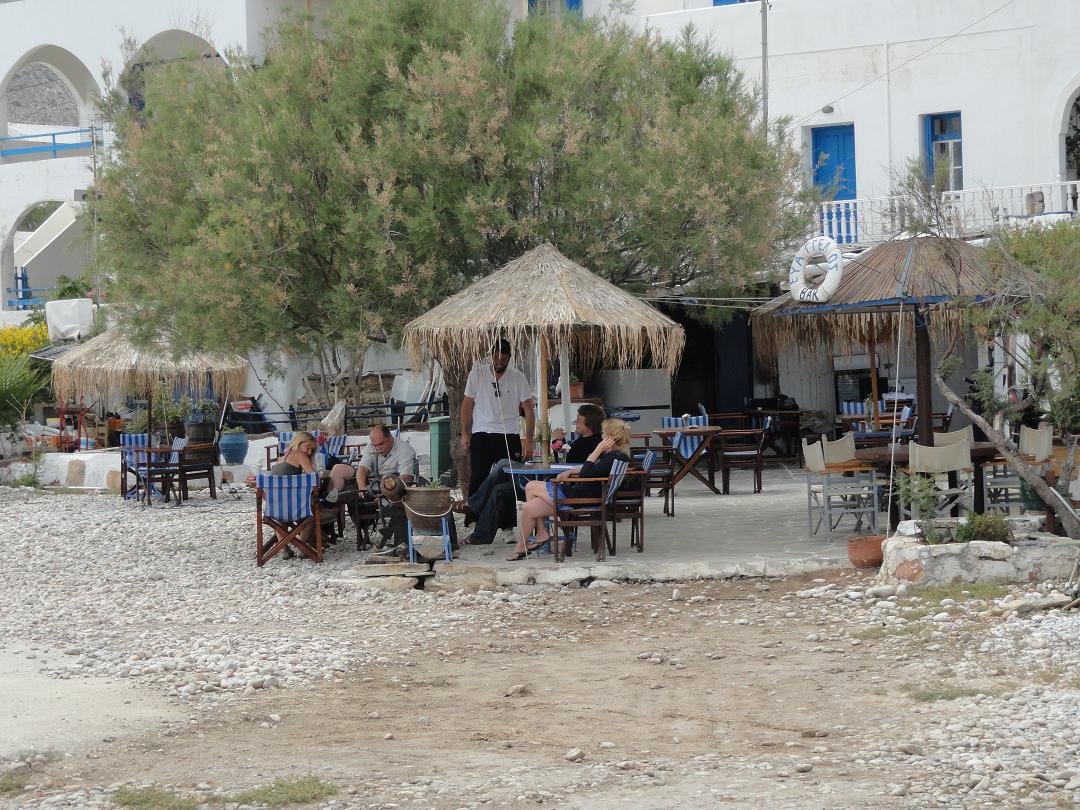 Na een wandeling over het eiland wilden we hier iets gaan drinken. Toen we gingen zitten in de Evangellis Beach Bar op het strand van het haventje Karavostasis was de ober druk in gesprek met de enige andere mensen die er op dat moment zaten en dat was hij nog toen wij na vijf minuten wachten weer weggingen zonder dat we iets hadden kunnen bestellen. Er werd nog vreemd opgekeken dat we opstonden ook...sorry maar ik had toch echt geen onzichtbaarheids-spray over mezelf heengespoten. Ons oordeel: vermijden als je dorst hebt, een 1 uit 10 |