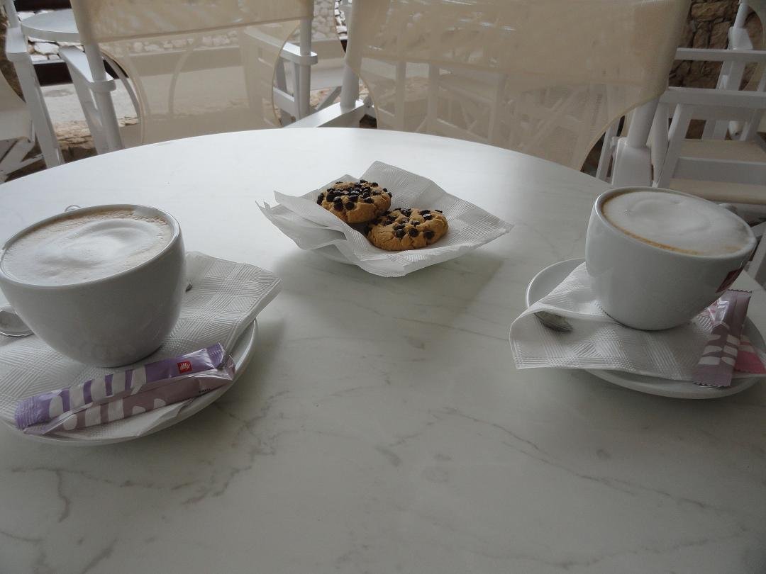 Dunavis Taverne is gelegen op het grote plein in Chora met de kerken, naast Nicolas Place (Dunavis heeft de traditionele houten Griekse taverna stoelen plus meer comfortabele blauwe). Ze serveren er verschillende soorten ontbijt, omeletten, gegrild vlees een kip, Griekse salades enzovoorts. De ober is zeer, zeer vriendelijk. Het is een beetje chaotisch, iemand in het restaurant is ziek en kwam niet opdagen (ik hoop niet van het voedsel, ahah). We bestellen een omelet ham en kaas en een een ontbijt met bacon en eieren. Het ontbijt bestaat uit zelfgemaakte jam, toast, boter, verse jus d'orange en koffie. Alles was ok�, behalve de koffie, die meer naar gekookt water smaakte. Later die dag de ober van het restaurant zag ons lopen over het eiland en gaf ons een lift met zijn auto naar zijn favoriete strand. Ons oordeel: voldoende tot redelijk, beter dan de buren, een 6,5 uit 10 |