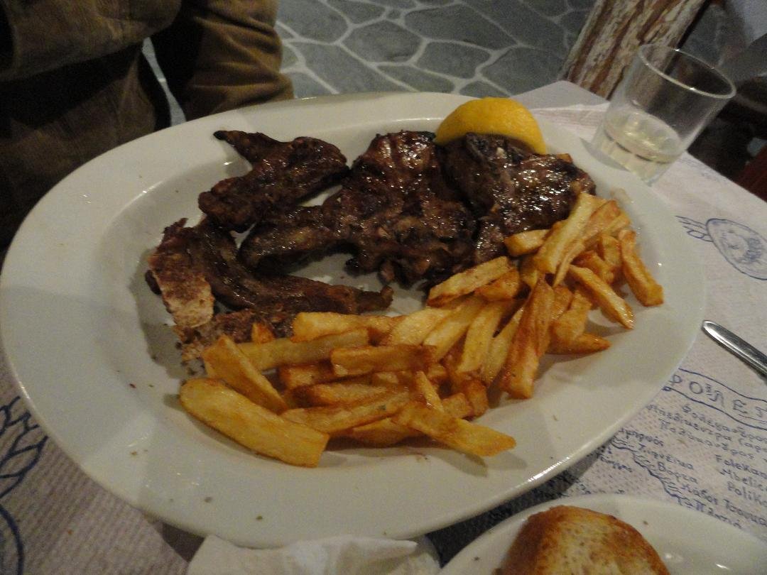 De To Asygrito taverne is gelegen op een van de pleintjes in de Chora. We probeerden er de spinach pie, de matsata (handgemaakte pasta) met kip, de lamskoteletjes en de tzatziki. De spinazietaart is koud maar wel lekker, de matsata met kip was zalig, de lamskoteletjes matig en de tzatziki redelijk. De frietjes zijn al helemaal koud als ze worden geserveerd. De witte huiswijn is eenvoudig en heeft niet veel smaak. Een echte aanrader is dus de matsata (dat is een specialiteit van het eiland Folegandros). Toen het voetbal op de tv begon waren we plots onzichtbaar en er kwam niemand meer kijken of we nog iets nodig hadden of misschien af wilden rekenen. Ons oordeel: redelijk, misschien aan te raden op een avond als er geen voetbal op de tv is, een 7 uit 10 |