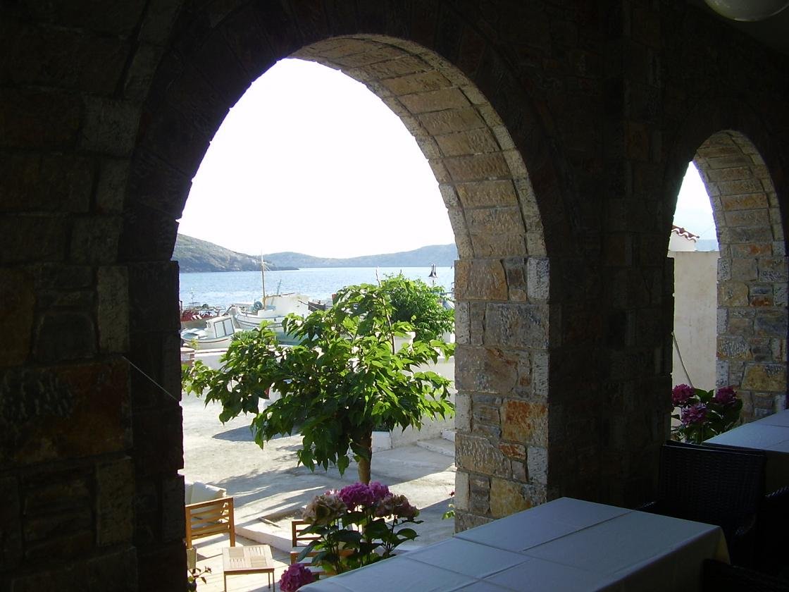 Fourni lag in de planning voor het jaar 2008 of 2009, om te kombineren met een volgende bezoek aan ons geliefde Samos, en we hebben het gehaald. Veel accommodaties zijn er niet op Fourni, maar ik had dit hotel gevonden dat er erg mooi uitzag. Het is een net nieuw (2007) drie sterren superior hotel en het heet Archipelagos. Het is een klein hotel met 12 kamers (9 doubles, waaronder 1 speciaal voor gehandicapten, en 3 tripples). Alle kamers hebben een balkon met een mooi uitzicht op de haven en de baai. Het hotel is het hele jaar geopend. Er is een receptie en er zit een bar bij en een restaurant. Alle kamers hebben airconditioning, sateliet-tv, een kluisje en een koelkast. Het hotel ligt aan de haven een beetje aan de zijkant van het stadje en kijkt uit over de baai en de haven. Het Archipelagos Hotel op Fourni is heel mooi opgezet, met veel natuursteen en hout. Op de stenen tegels die op de grond en de trappen liggen kun je fossiele overblijfselen van varens zien. De kamers zijn modern ingericht met een mooie badkamer, goede bedden, een flatscreen tv en een mooie design badcel. Op het balkon is het vooral 's avonds erg prettig vertoeven vanwege het leuke uitzicht. Beneden is de receptie en er is een restaurant met lekkere stoelen en ook een terras voor het hotel en op de pier in de haven tegenover het hotel. Er is nergens op beknibbeld. Je kunt in het hotel goedkoop ontbijten: voor 3 euro 50 de man hadden we al een ontbijt met jus d'orange, een pot echte koffie (geen nescaf� dus) en broodjes, maar je kunt natuurlijk ook uitgebreider bestellen met croissants of gebakken eitjes en dergelijke. Het restaurant was trouwens uitstekend. |