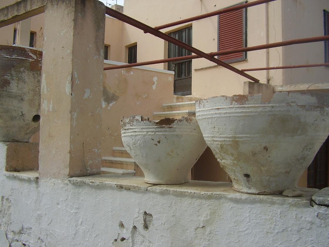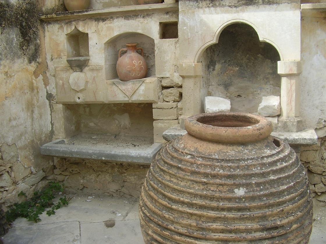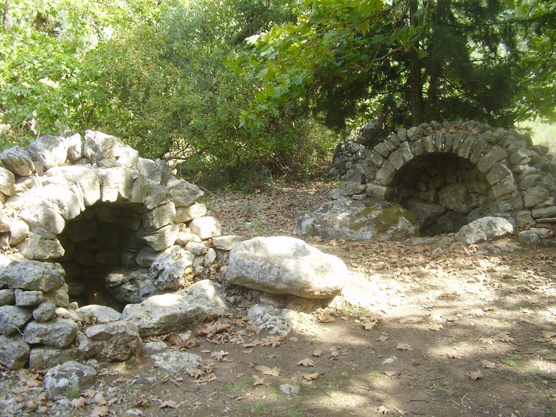De Venetiaanse bronnen / waterputten van Gavalochori kunnen worden bereikt door ongeveer 1 kilometer rechtdoor te lopen vanaf het bord in het dorp, dat verwijst naar alle bezienswaardigheden. De smalle weg leidt omhoog totdat je een T-splitsing bereikt. Hier sla je linksaf. Aan de linkerkant (gele pijl) is er een soort van ronde structuur (onbekend wat het is, maar zou Venetiaan of ouder kunnen zijn) en als je nog wat verder loopt dan zie je de Venetiaanse waterputten aan je rechterhand. Loop nog verder en dan zie je beneden aan je linkerkant iets wat lijkt op een Venetiaanse (of misschien zelfs Romeinse?) brug. We hebben ook geprobeerd de Romeinse tombes te vinden, maar zonder succes. Ik kreeg te horen dat er huizen bovenop waren gezet en dat ze moeilijk waren te vinden. We zagen een soort van grotten (slechts een paar) in de tuinen van twee huizen, die eruit zagen als Romeinse graven (als ik het vergeleek met de tombes die we hadden gezien in Argiroupolis), maar een van hen werd gebruikt om kippen in te houden, terwijl een andere vol met afval zat. |