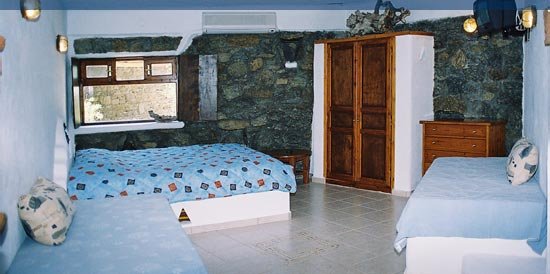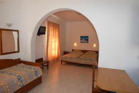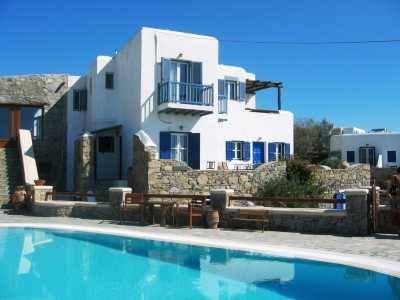 Here in the Eleni Studios we have also stayed a couple of times. Compared to other hotels in Mykonos Town it is pretty cheap but basic (but the rooms do have shower, toilet and air conditioning) and the rooms are small but it is rather quiet for central Mykonos Town (no noise from discos etc.). It is a small complex that consists of a number of studios in two buildings on either side of a street. The street where it is goes from the bus station (for Platis Gialos, Super Paradise etc.) towards the center. Nearby is a cheap supermarket. Not a bad place. Check availabilities & prices and book Eleni Studios in Mykonos Town - click here. |