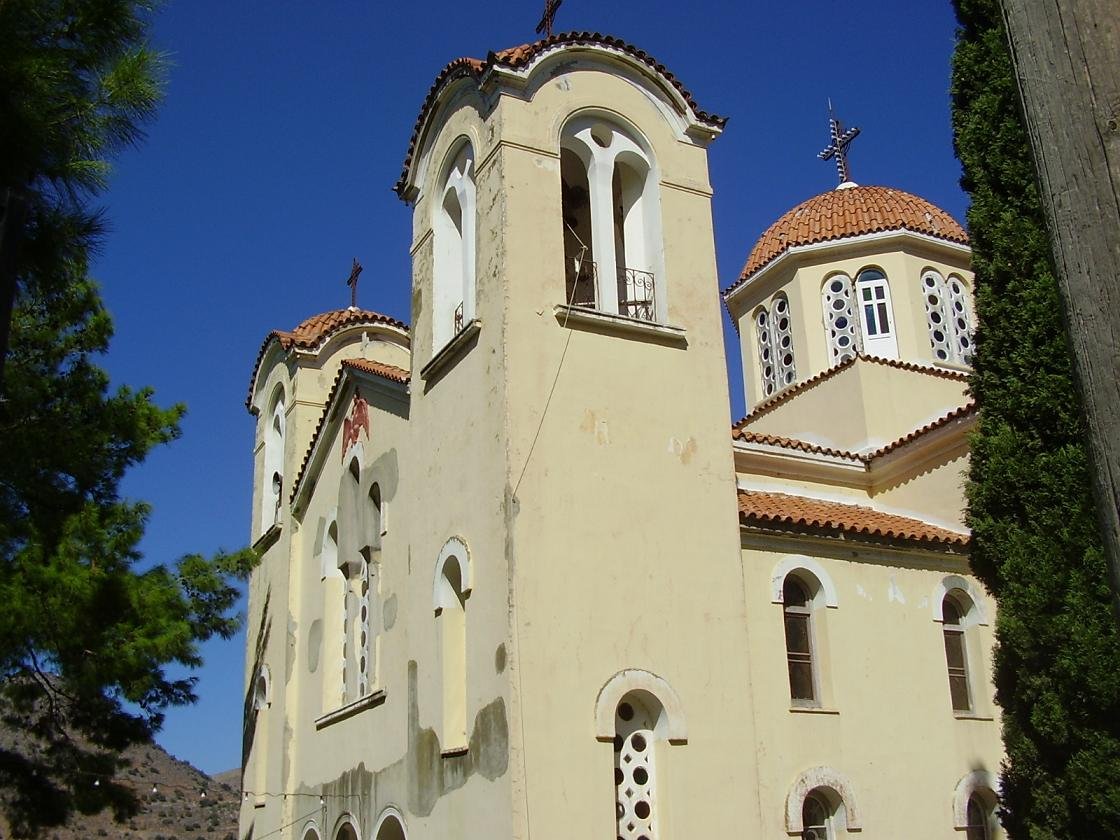De kerk van de Maagd 'Panagia Koumpelina' is een Byzantijnse monument dat ligt aan de rand van het dorp Houmeriako. Het is gewijd aan de aanname van de maagd Maria. Het is de enige overlevende bijvoorbeeld in het oosten van Kreta van een 'kruis-in-een-vierkant' koepelkerk. Het grootste deel van de kerk dateert uit het einde van de 11de of vroege 12de eeuw. Tijdens de Venetiaanse bezetting is er aan de westzijde nog een stuk aan toegevoegd. De kerk werd nog gerestaureerd in 2010. Opmerkelijke architecturale en decoratieve elementen van de kerk zijn de koepel, de zaagtand-strook onder de dakpannen en de versiering boven de deur. Ooit was de kerk waarschijnlijk geheel met fresco's bedekt, maar daar is helaas niets van overgebleven. |