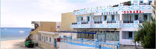 Dorana Studios in Diafani Karpathos consists of 9 studios in different size that are suitable for 2, 3 or 4 people. There is even an accommodation that is appropriate for 6 persons. All studios have a private balcony with a splendid sea view. The complex is located 50 metres from the sea and 200 metres from the port and close to it are restaurants, bars and tavernas. On the ground floor of Dorana is a small supermarket. The bus stop is 20 metres away. The studios have hotplates and every studio has a refrigerator. Diafani is the harbor in the north of the island of Karpathos, not far from the traditional village of Olympos. Room rates have not been specified. Check availability and prices & book Dorana Studios on Karpathos - click here. |