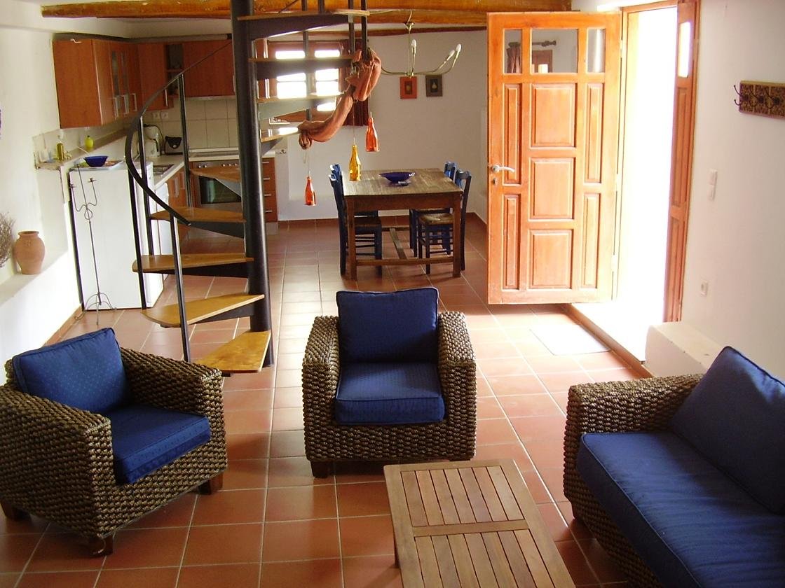 The detached Villa is a former stable that has been renovated to a comfortable, two storey house (110 m2) with all modern amenities and plenty of outside sitting areas. The villa is suited to house 4-5 persons. On the first floor you will find the open plan living room/kitchen. The kitchen is fully equipped and has a dishwasher for your convenience. An extra toilet room (besides the two other ones on the second floor) is provided for. Here you will find your sat. TV and your broadband Internet connection. You can have breakfast, lunch or dinner on an antique French table. |