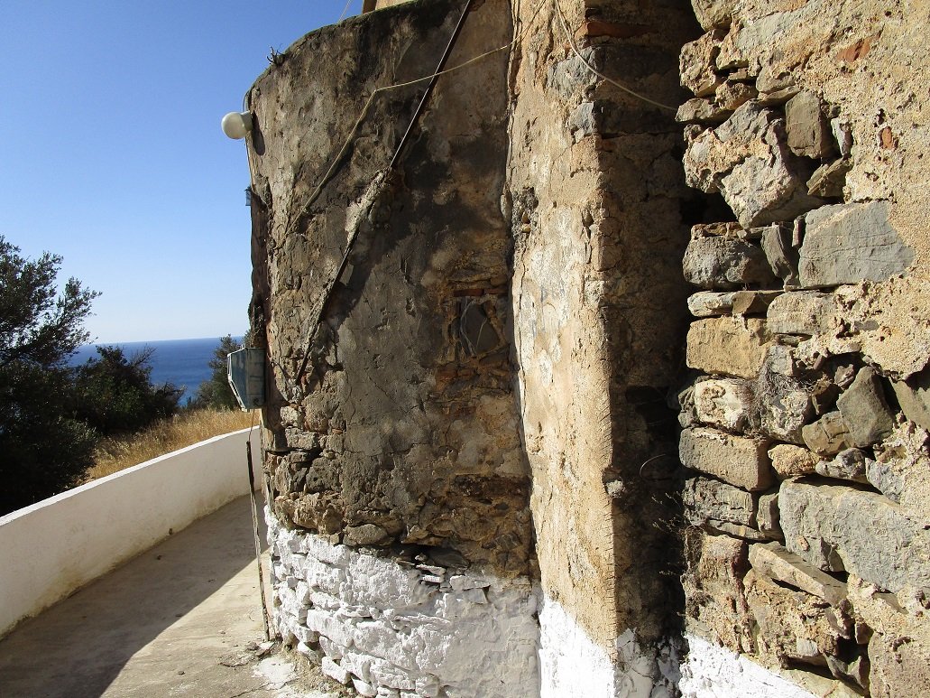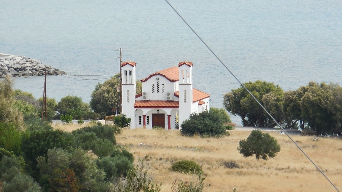 Het dorpje Kastri zelf is klein maar er zijn wel wat hotels (familiehotels - alleen kleintjes) en pensions, en er zijn wat appartementen te huur. Aan de zee zijn een aantal taverna's. Op het stadsstrand staan een aantal tamarisk bomen die voor wat schaduw zorgen, maar er zijn geen ligbedjes en parasols te huur. Zo op het eerste gezicht een heel leuk dorpje met een heel mooi strand / naturistenstrand erbij. Als je de weg omhoog uit het dorp die naar de "hoofdweg" terug leidt neemt, kom je langs de oude Byzantijnse Agios Georgios kerk die dan aan de rechter kant van de weg staat. |