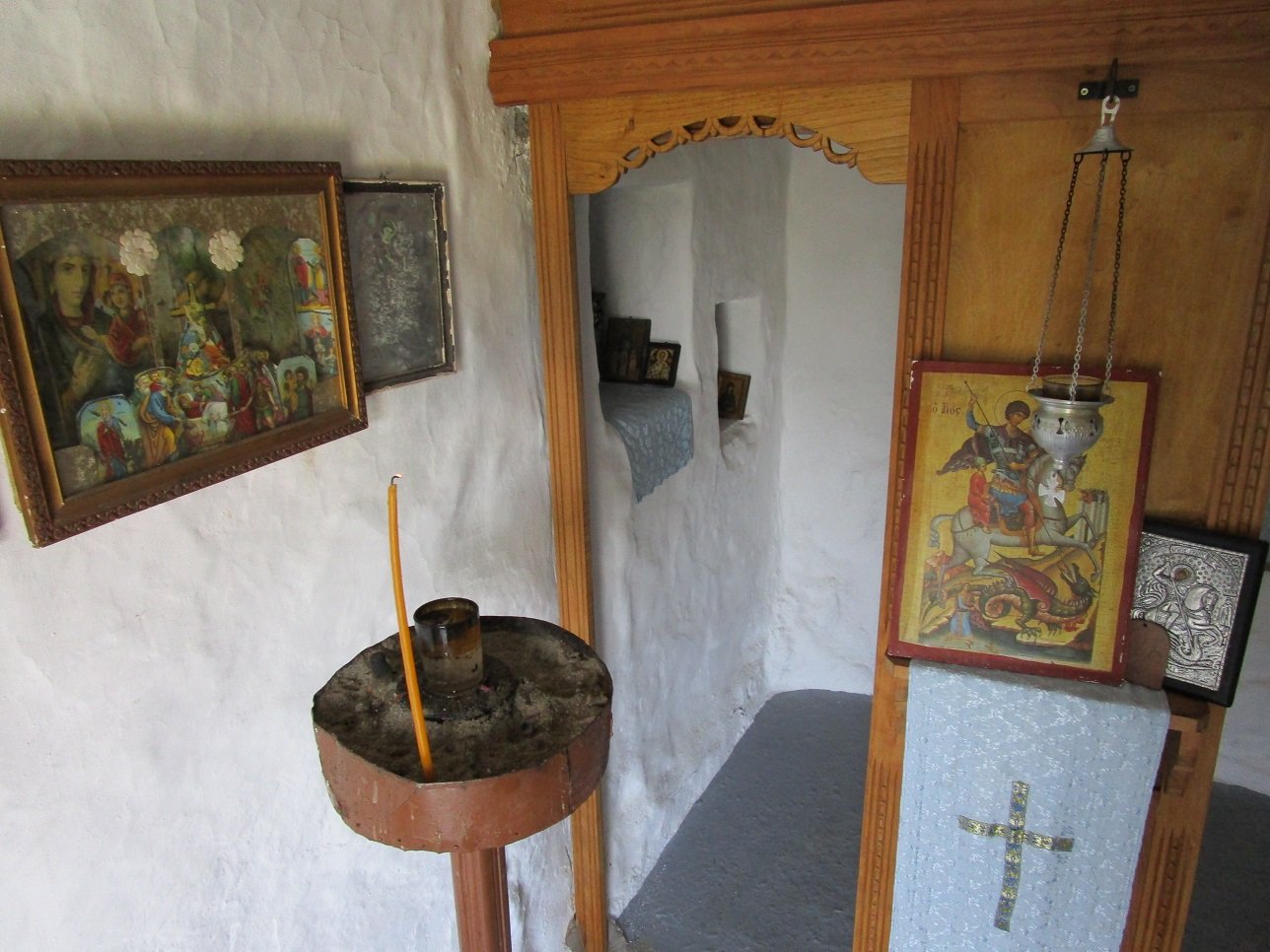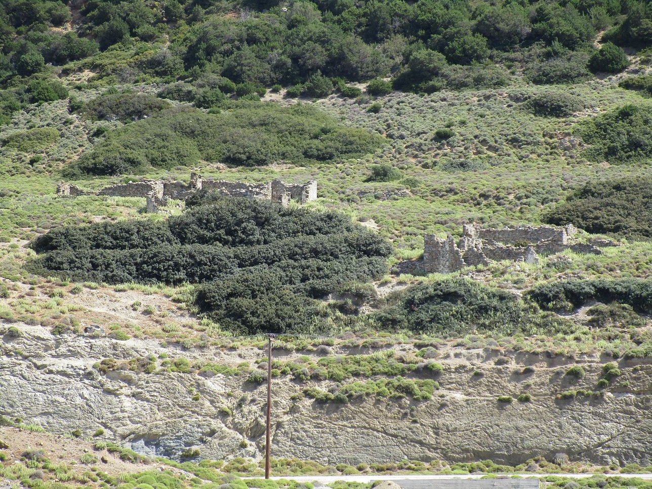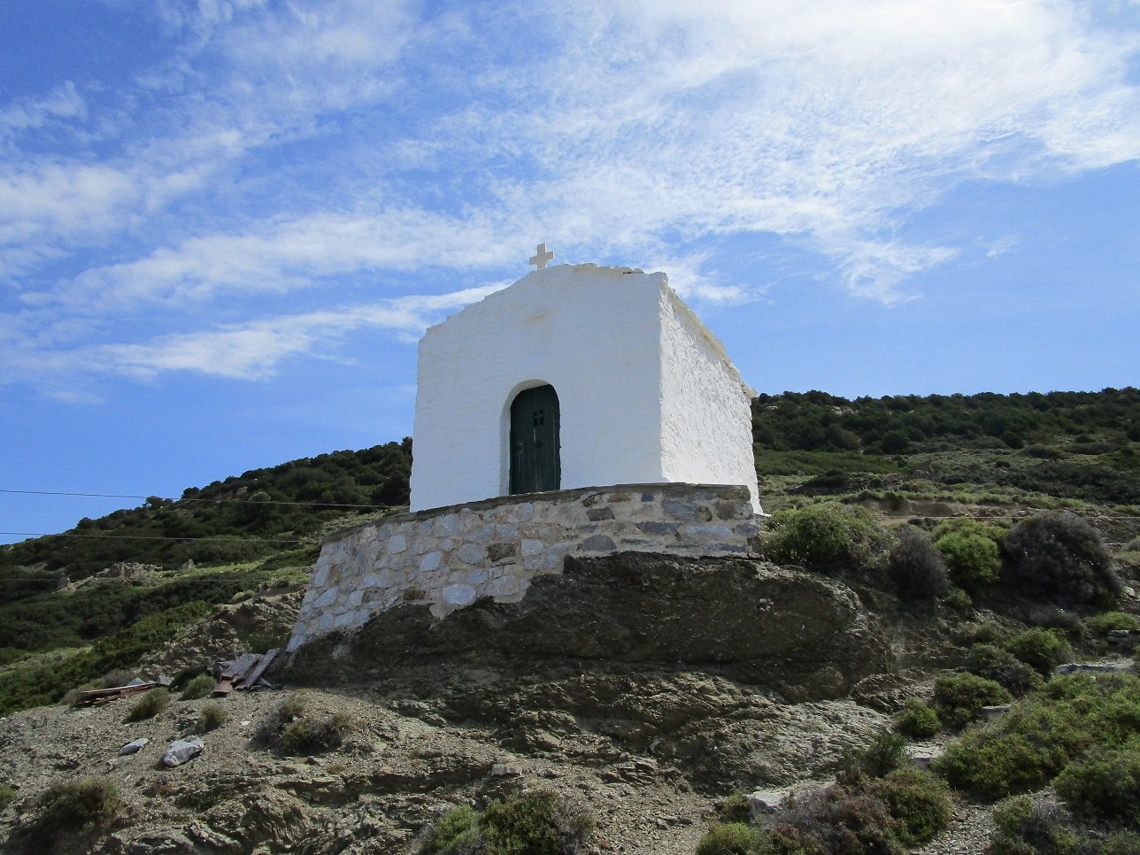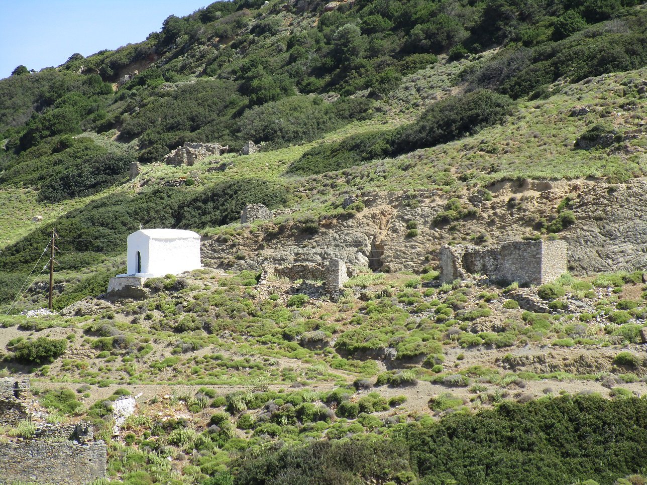 On the way from the capital Skyros Chora towards the airport you will pass an area called Katounes. It is located in the north of the island, 6 kilometers from Skyros Chora, just before the exit to the excavation of the ancient Palamari. Along the way you will encounter several nice churches. At first you would think that in Katounes there are the ruins of various fortresses, because you see very large buildings that have fallen into disrepair and that consist of large piled stones. In fact, they are remnants of very large sheepfolds and houses of shepherds who stayed here in the lawns with their herds of goats and sheep in the days when the current road to Skyros Chora did not yet exist. In Katounes once lived a fairly large community of shepherds. The houses date from the 19th century and on a hill stands the pretty little church of Agios Georgios.
