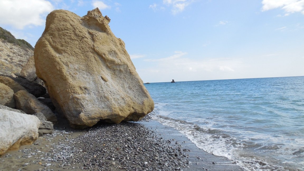 This elongated, mostly of pebbles and boulders consisting beach, lies in the south of Crete and can be reached via the route Heraklion - Knossos - Peza - Arkalohori and then through different routes further south. The distance to Heraklion is about 75 kilometers. It is located just east of the beaches of Tsoutsouros, Dermatos, Listis and Kastri, in a row of beautiful linked beaches on this part of the south coast. The roads in this area are now good and the beach is easy to reach without many problems. The village of Keratokampos itself is small, with only a few buildings, but there are a number of tavernas, kafenions and shops and of course there is also a small church