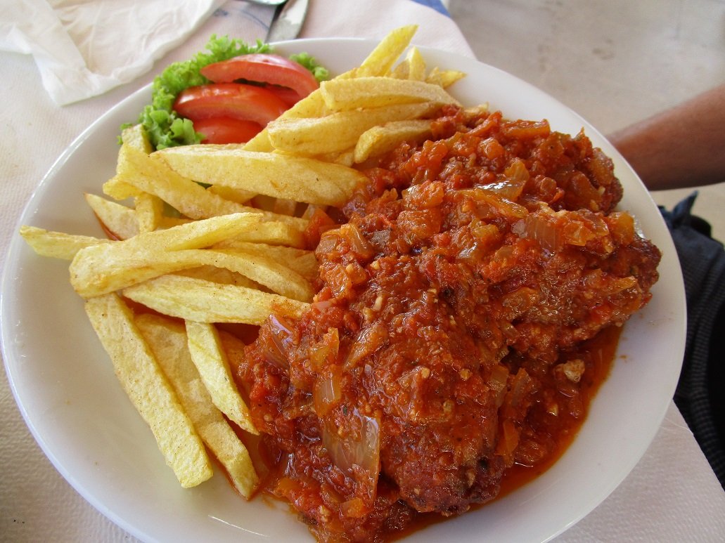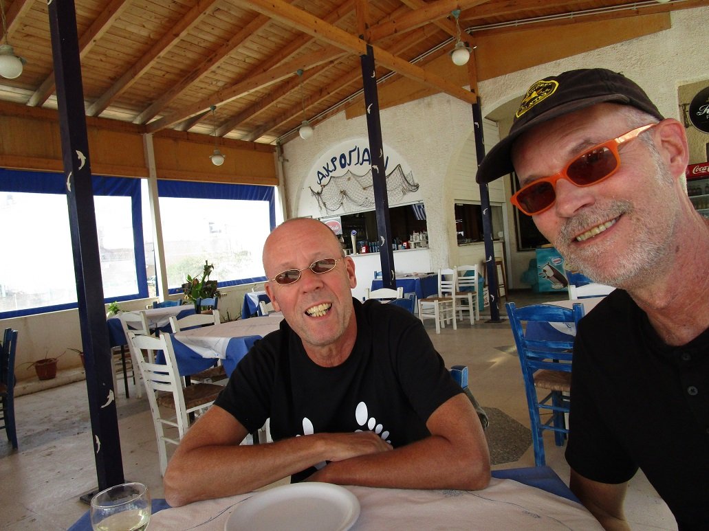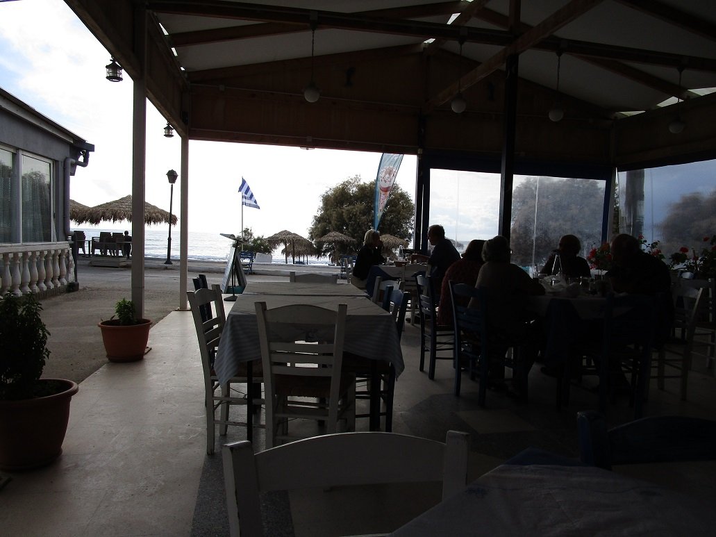 This cozy tavern is located on the beach of Kokkinos Pirgos. There are nice dishes on the menu and the waiter of the tavern is very friendly. We order the tzatziki, the soutzoukakia (meatballs in tomato sauce), the Greek salad, half a liter of white wine and (never seen on a menu) vegetarian mousaka. The vegetarian mousaka was a bit of a gamble but is very tasty. No piece of lukewarm mousaka that has been standing in the display for half a day, but fresh and hot from the oven. The rest of the food is also very tasty. Our verdict: very good, a 9 out of 10. |