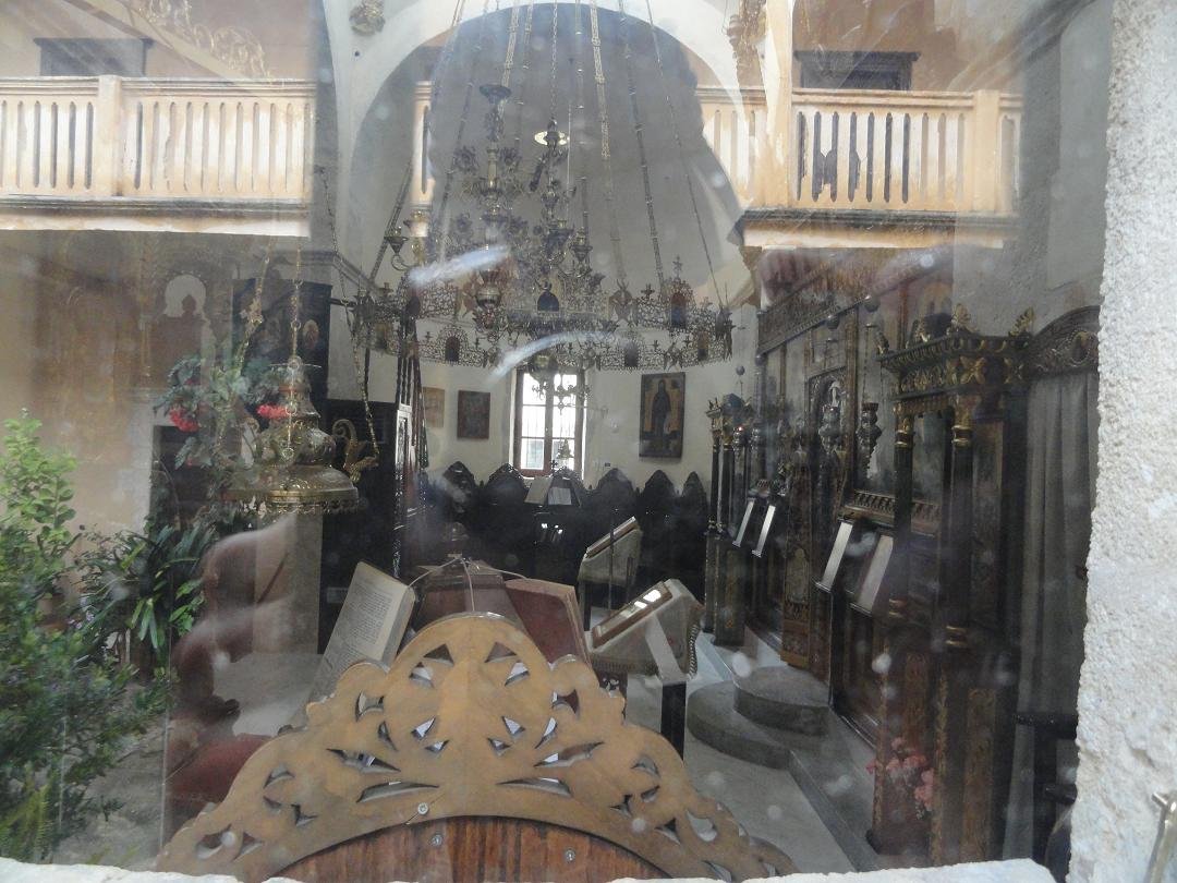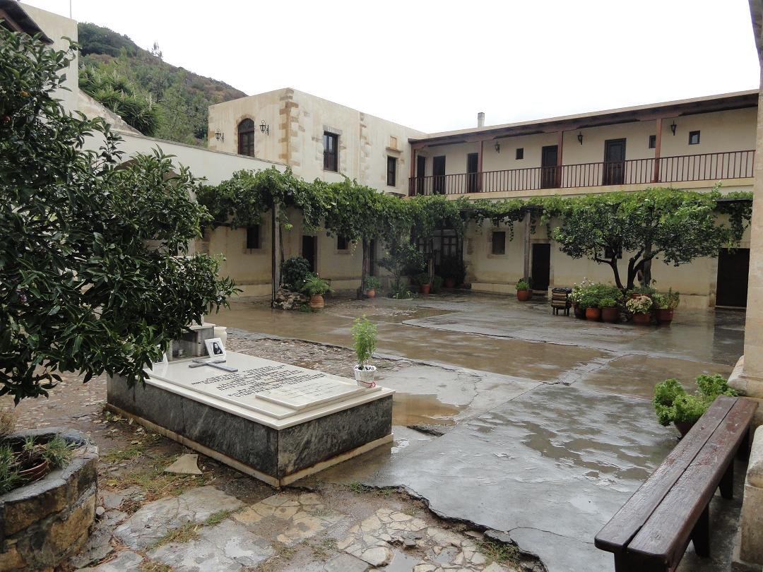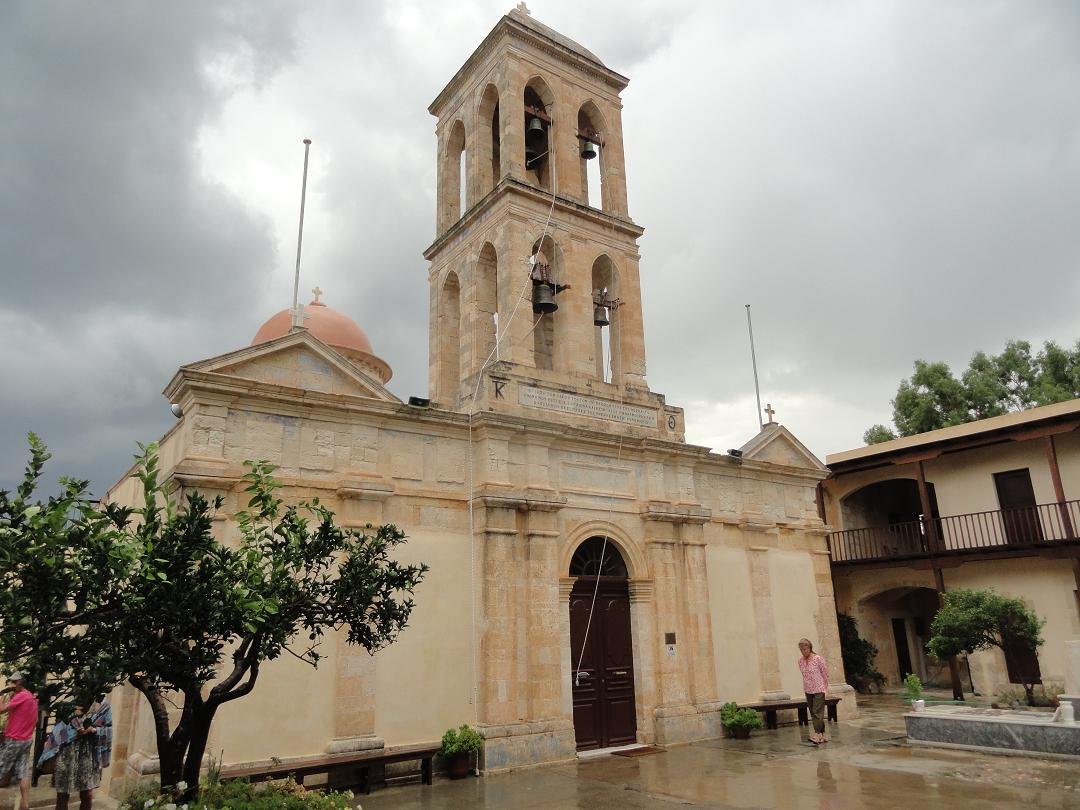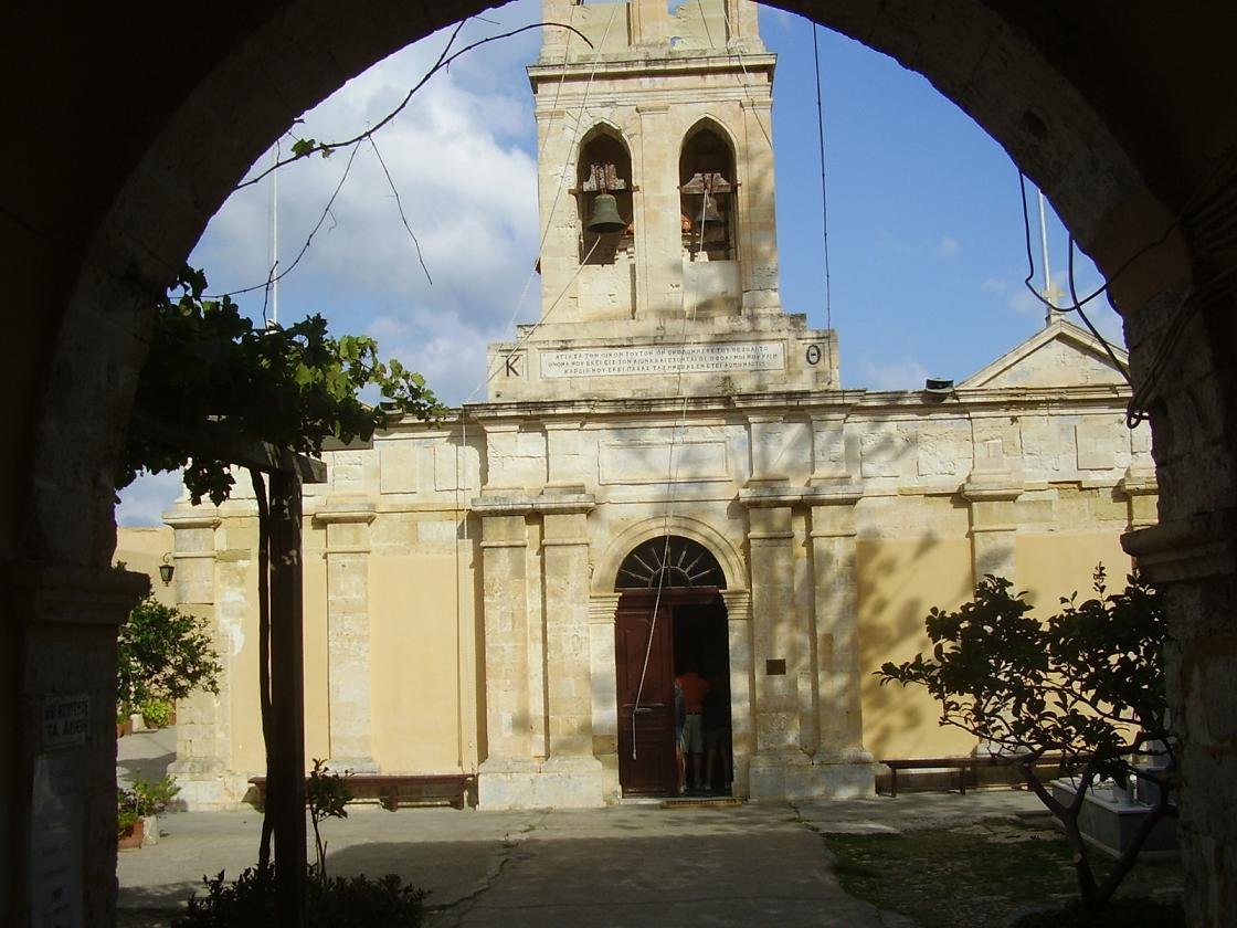 Op een heuvel een klein stukje boven Kolimbari ligt het 17e eeuwse klooster van Gonia dat nog door vijf monikken wordt bewoond. Hier vind je ook een klein museum waar religieuze voorwerpen zoals bijbels met zilveren beslag, zilveren kruizen, priestergewaden en oude ikonen zijn tentoongesteld die terug gaan tot in de 13e eeuw. Sommige van deze ikonen worden beschouwd als behorend tot de belangrijkse ikonen van het eiland. Het klooster werd gebouwd tussen 1618 en 1634 en is een van de belangrijkste kloosters van Kreta. Het klooster heeft een reputatie van verzet tegen de bezettende mogendheden en is op verschillende momenten aangevallen, vernield en weer opgebouwd. Het klooster is behalve op zaterdag (dan is het gesloten) geopend van 9.30 tot 13.00 en van 16.30 tot 20.00, gepaste kleding wordt gevraagd (dus geen shorts, korte mouwen etcetera) en foto's mogen er niet gemaakt worden. Leuker kunnen we het niet maken... |