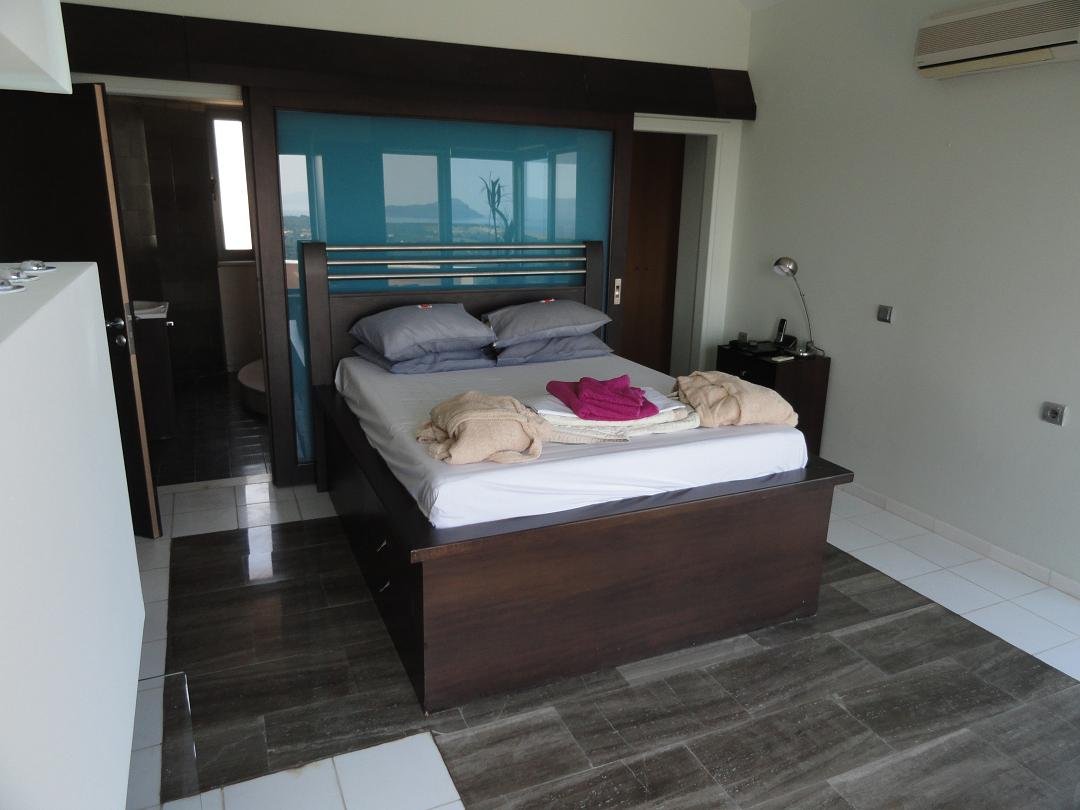Wij hebben hier in september 2015 een viertal dagen gelogeerd. We werden heel vriendelijk ontvangen door de eigenaresse Maria die ons door de villa leidde en wat uitleg gaf over onder andere de apparaten die er stonden. Daarbij bleek de DVD-speler het niet te doen. Een uur later kwam ze terug met haar man en werd er een nieuwe DVD-speler geïnstalleerd, die het wel deed en het "probleem" was opgelost. De villa is vrij groot (zo'n 200 m2). De drie slaapkamers en de badkamer met ligbad (en douche) bevinden zich op de benedenverdieping. Twee van de slaapkamers hebben toegang tot een terras. Op deze verdieping is de wifi aangesloten en is ook de ontvangst van het internet het beste.