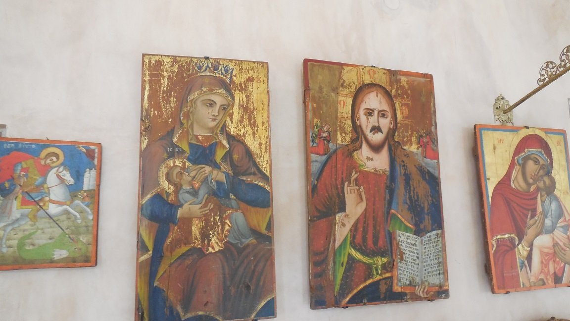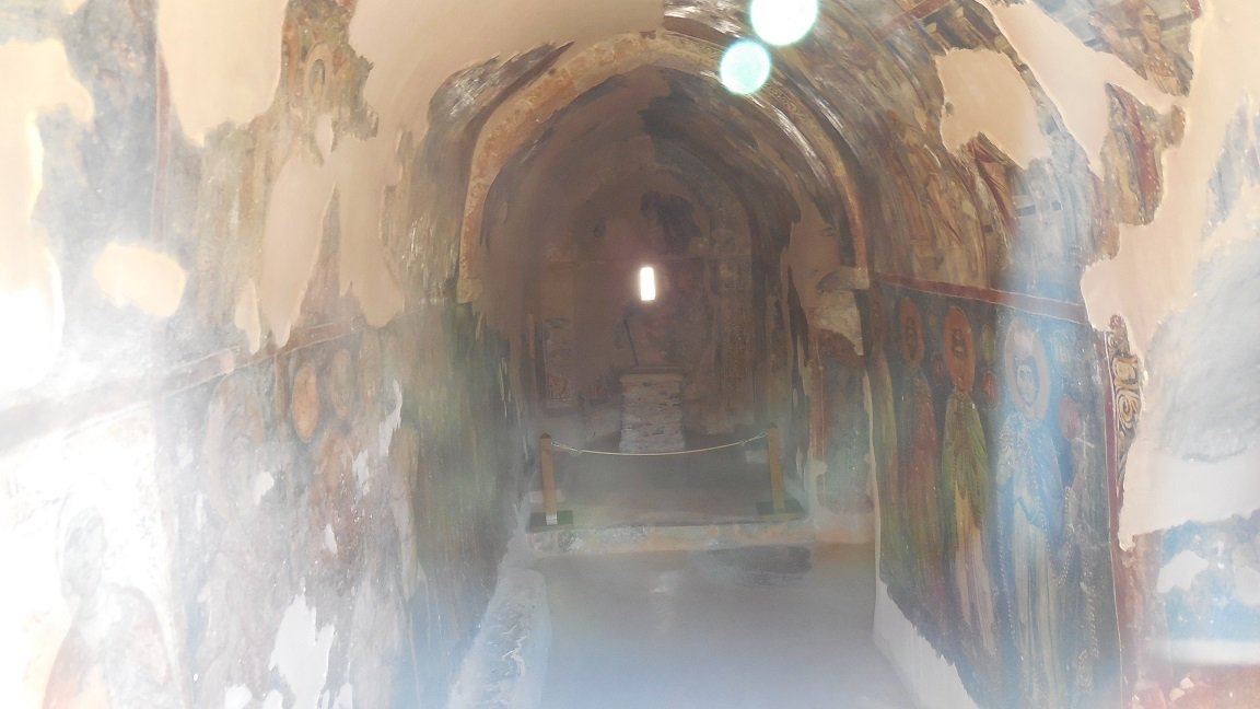 There was a 3 euro entrance fee to get into the church and you are not allowed to take any pictures. I suggest you take a look at the outside, peak in an than move on to other equal beautiful churches, like the one in Pirgos, if you want to take a look at equally nice frescoes for free. Also in the south west of Crete above Sougia and Paleochora there are countless Byzantine churches with their doors open, where you can walk in with your camera and make pictures if you want to. |