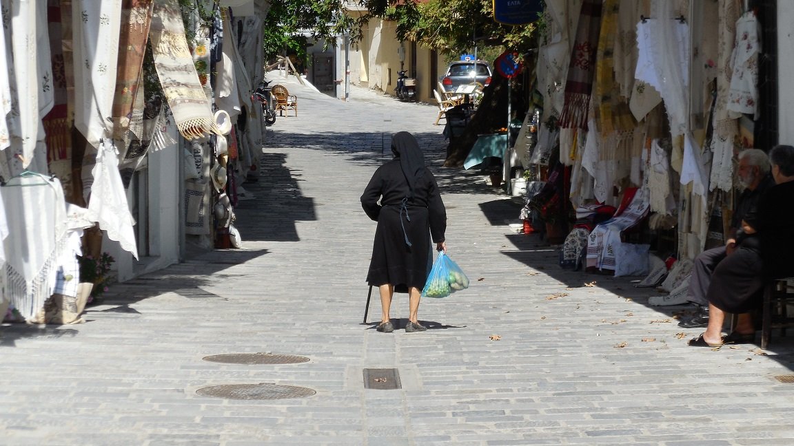 From its position on the Kastella hill Kritsa looks out over the Bay of Mirabello. For tourism the village heavily depends on the nearby 13th century Byzantine church of Panagia Kera. Most of the villagers still live from agricultural and garden products, but the rest of them has either opened a restaurant, or a lot of them have started weaving carpets, rugs, table cloths and clothing, which are hanging outside on the streets. The owners of the shops are usually old ladies that will try to stop you in the street as you walk by because they want you to have a look at their merchandise and hope to sell you some of it. |
