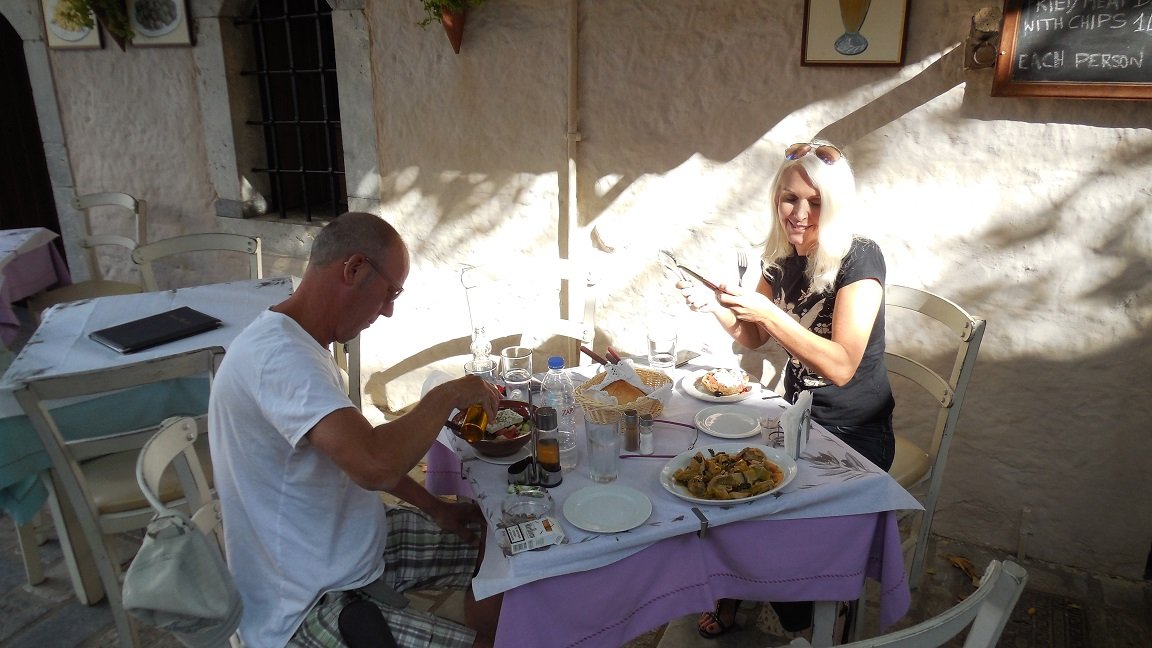 The Agadiko Taverna is situated a bit on the end of the main shopping Kritsa on the right hand side. It is a family restaurant that is run by the friendly Marina. Her sister has a shop opposite the taverna where beautiful art is sold (mainly glass and ceramics). The food is great and a little more attention has been paid to it than the average taverna. My moussaka is sprinkled with cheese and it it is very tasty. There are also delicious crispy fries to go with it. Also the fish we ordered is fantastic. The house wine is very good as well. Moreover the taverna is also very cheap, highly recommended. Our verdict: fantastic, a 9 out of 10 |