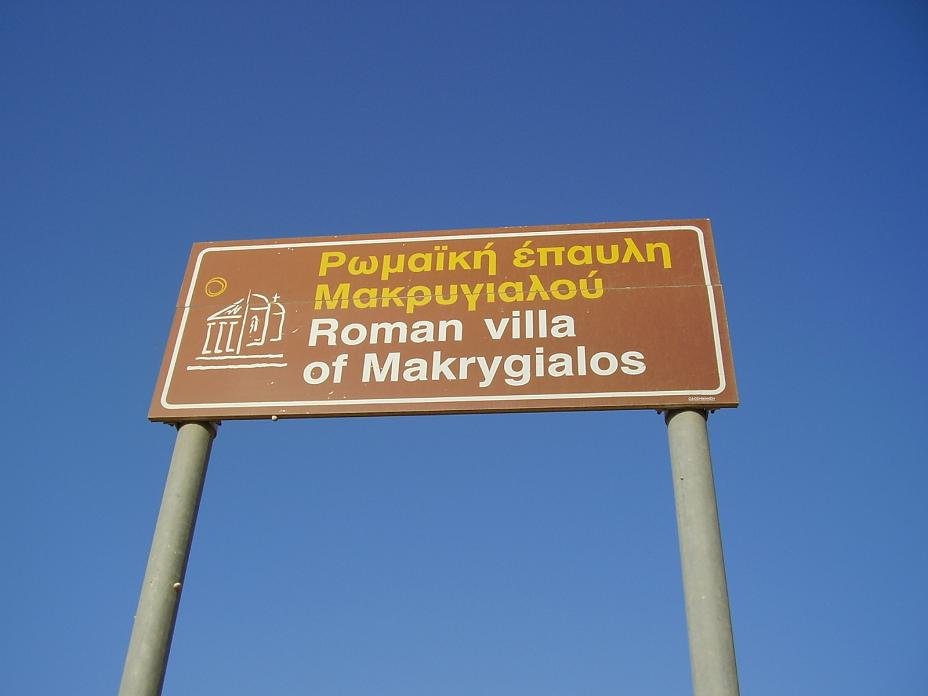 Voor de liefhebbers van oude stenen is er dichterbij nog iets te zien want in Makrigialos zelf zijn de restanten van een Mino�sche villa blootgelegd. Je kunt er ook vanaf de hoofdweg komen die door het dorp heenloopt. De route wordt aangegeven met een bord. Opgravingen in de zeventiger jaren toonden aan dat de villa vernietigd was door een brand. Er zijn dikke buitenmuren en veel kamers en een grote binnenplaats en de villa lijkt in alle opzichten zoals hij is ingedeeld op een kleine kopie van de grotere Mino�sche paleizen op Kreta. Ook zijn er vlak aan de zee nog de restante van een Romeinse villa te bekijken. |
