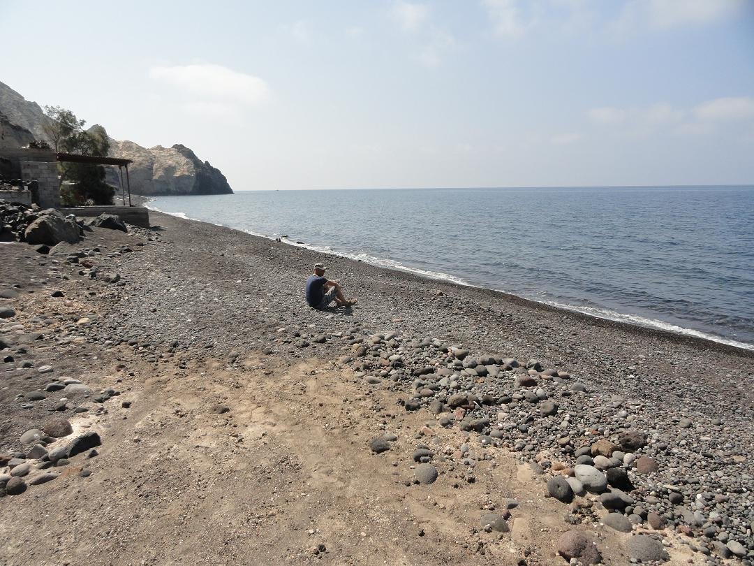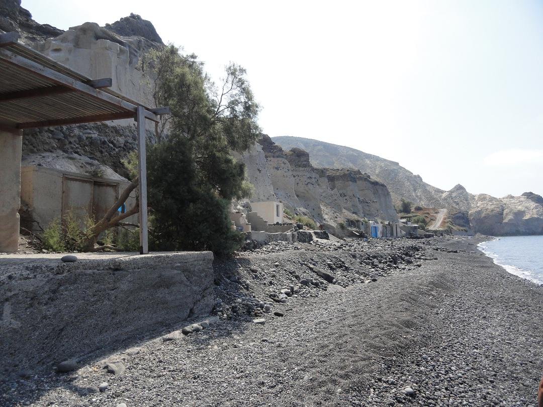 Op het strand van Mesa Pigadia is ook een taverna. Er zijn zelfs een paar ligbedjes op het strand. wat ons betreft een van de schilderachtigste, meest afgelegen, rustigste en leukste strandjes van Santorini, een van de favorieten.