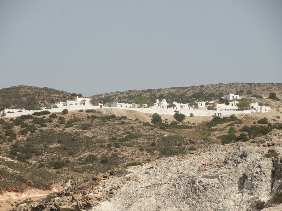 Na het zwemmen bij het strand is het bijna tijd om naar huis te gaan. We varen de grote baai in waar ook het havenstadje Adamas ligt. Eerst maken we nog een stop en varen rond een aantal gekke rotsen. Een ervan lijkt op een beer en als je verder doorvaart en terugkijkt lijkt dezelfde rots op een konijn. Met wat meer fantasie kun je in andere rosten weer andere dingen zien. We gaan door langs de kust en zien diverse dorpen met "syrma". Dit waren van origine in de rotsen uitgehakte opbergplaatsen waar na het einde van de zomer de vissersboten werden opgeborgen. Na de Tweede Wereldoorlog begonnen de mensen er een verdieping op te zetten en ze te gebruiken als vakantiehuisjes. Nadat de kapitein zijn boot had geverfd had hij meestal nog een hoop verf over en daarmee schilderde hij dan zijn huis. Vandaar dat alle huizen in deze dorpjes een andere kleur hebben, wat het extra feestelijk maakt. Het laatste dorp met syrma waar we langsvaren is tevens het mooiste. Het is de voormalige hoofdstad van het eiland, Klima. Direkt naast het dorp zijn in de rotsen de uitgehakte catacomben te zien die zijn gemaakt in de Romeinse tijd (1ste eeuw na Christus). Ooit is men hier begonnen met de eerste catacomben en later is men doorgegaan even boven Klima waar zich nu het op een na grootste complex van catacomben op de wereld bevindt (zie de pagina bezienswaardigheden). |