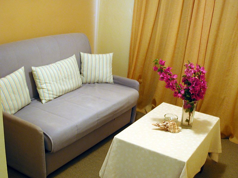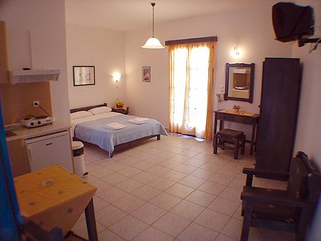 Bij Soultana's zijn er twee-en driepersoons kamers en studio's alsook enkele van de meest mooie en ruime appartementen in Pollonia van heel Milos. Echter, er zijn slechts twee van dergelijke appartementen bij Soultana's, en ze gaan snel, dus vroeg boeken wordt aangemoedigd. Elk appartement in Soultana's omvat 2 slaapkamers, een grote woonkamer, een zeer ruime keuken met eethoek, en een toilet naast de grote badkamer. Alle units zijn voorzien van airconditioning, en er is een schoonmaakservice twee tot drie keer per week. Er is ook gratis parkeergelegenheid tegenover het complex, en vanaf 2009 is er een ondergrondse garage en een zwembad. Ontbijt is niet inbegrepen in Soultana's. Degenen die willen ontbijten kunnen tussen 8.00 en 10.30 aan de overkant van de straat terecht bij de zee naast de deur. |