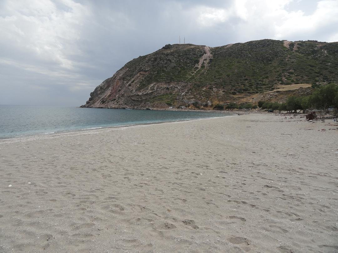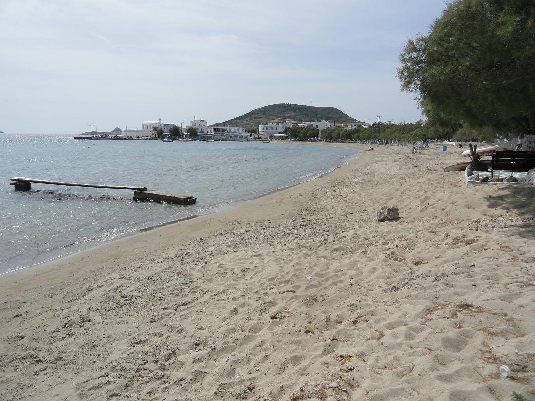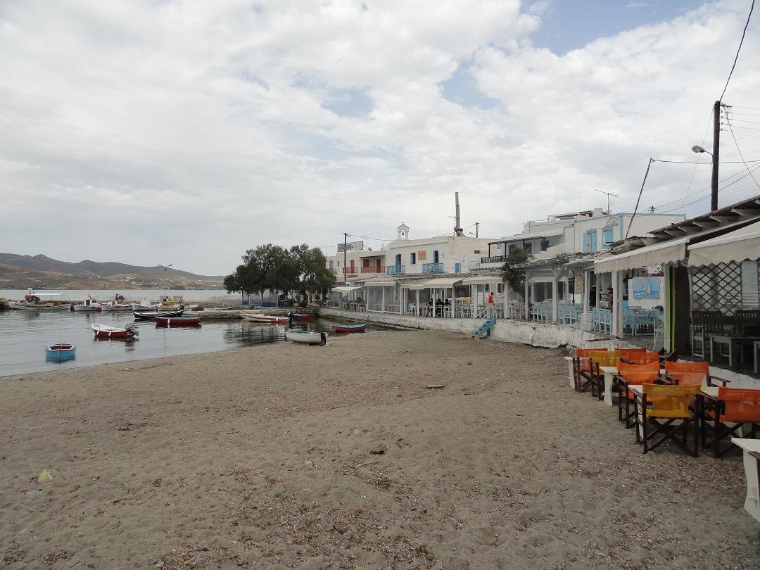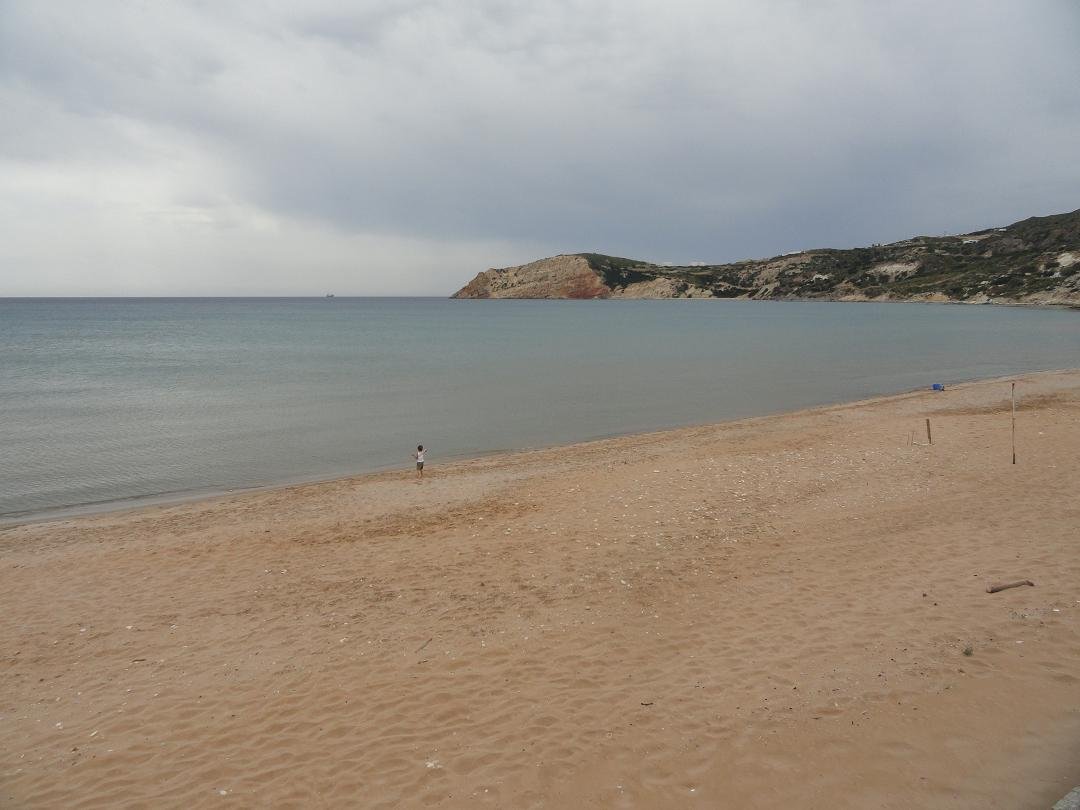 Lang zandstrand net achter het meer van Milos en niet ver van de luchthaven. Het is gelegen aan de zuidkant van de krater. Achivodolimni is een grotendeels ongeorganiseerd strand zonder faciliteiten (alleen een paar bomen en parasols in het begin, maar dat is niet het beste deel van het strand). Er drijft wat rommel in het water aan het begin van het strand, maar loop honderd meter door en het is weg, het water is kristalhelder en het strand wordt schoon. Het is een zandstrand met ondiep water en het is heel gemakkelijk om in het water in te gaan. Het blijft een hele tijd ondiep. Toen wij er waren waren er acht mensen op het (lange) strand in totaal en ten minste vier van ons waren in naturisten-stijl zonder zwemkleding (inclusief ons dus). Twee van hen konden we niet zien, omdat ze zo ver weg zaten - zoals ik al zei het is een lang strand. Niet veel schaduw op het strand en geen taverne op het moment, maar heerlijk! Een strand voor naturisten. Breng je eigen water en een goede sunblock en ga lekker ontspannen. Vanaf het strand is er een uitzicht op het dorp Adamas. |