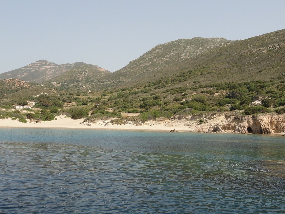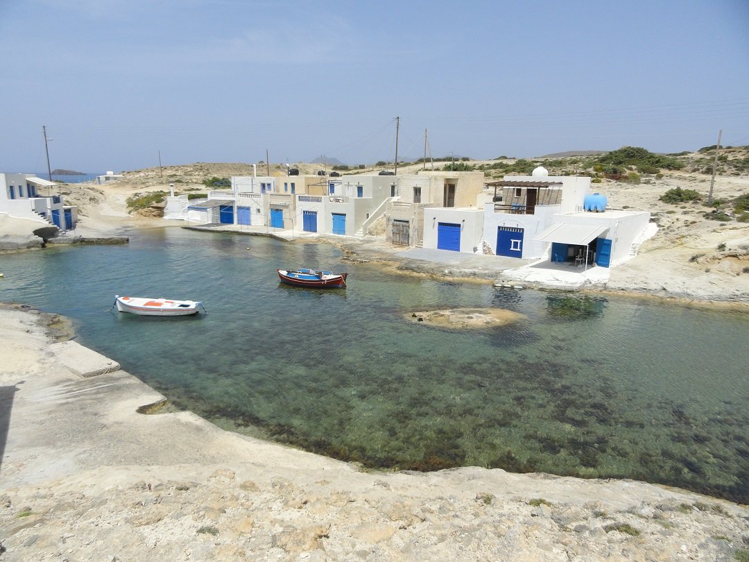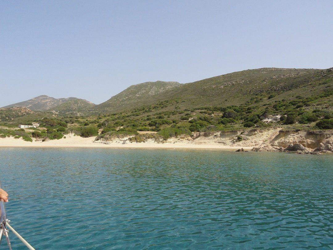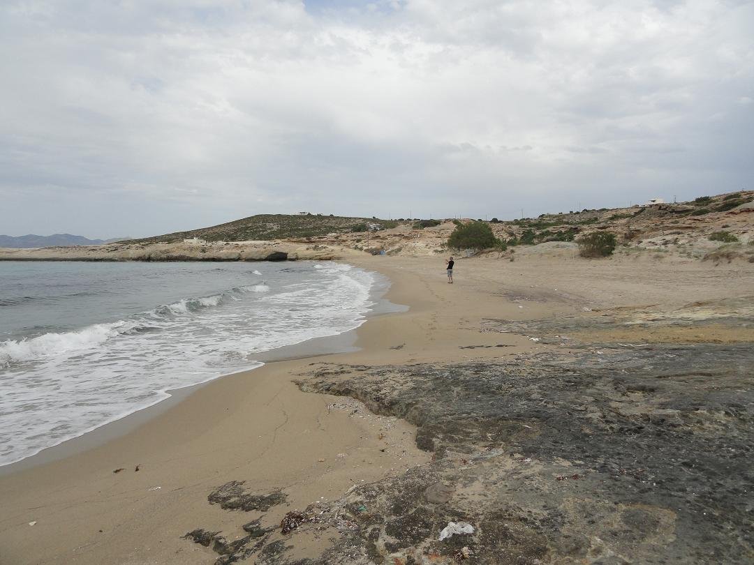 Lang zandstrand net achter het meer van Milos en niet ver van de luchthaven. Het is gelegen aan de zuidkant van de krater. Achivodolimni is een grotendeels ongeorganiseerd strand zonder faciliteiten (alleen een paar bomen en parasols in het begin, maar dat is niet het beste deel van het strand). Er drijft wat rommel in het water aan het begin van het strand, maar loop honderd meter door en het is weg, het water is kristalhelder en het strand wordt schoon. Het is een zandstrand met ondiep water en het is heel gemakkelijk om in het water in te gaan. Het blijft een hele tijd ondiep. Toen wij er waren waren er acht mensen op het (lange) strand in totaal en ten minste vier van ons waren in naturisten-stijl zonder zwemkleding (inclusief ons dus). Twee van hen konden we niet zien, omdat ze zo ver weg zaten - zoals ik al zei het is een lang strand. Niet veel schaduw op het strand en geen taverne op het moment, maar heerlijk! Een strand voor naturisten. Breng je eigen water en een goede sunblock en ga lekker ontspannen. Vanaf het strand is er een uitzicht op het dorp Adamas. |