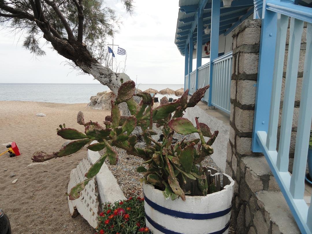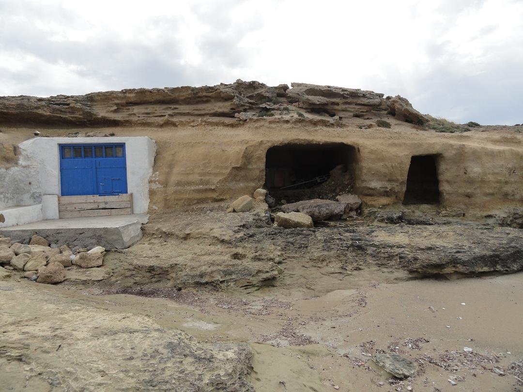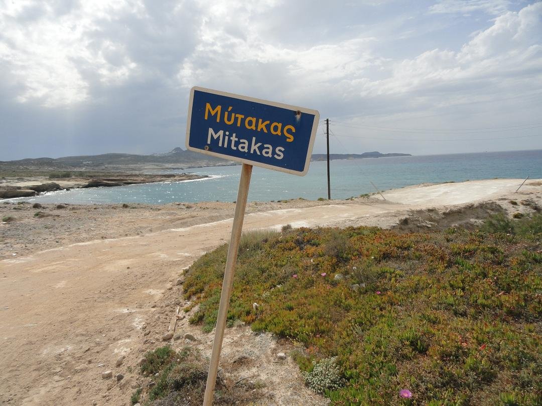 Mitakas Beach is een aardig en rustig zandstrand aan de noordkant van het eiland Milos. Het ligt even ten oosten van het bekendere Sarakiniko Beach en is te bereiken via een afslag op de weg die tussen Adamas en Pollonia loopt. Aan de zijkant van Mitakas beach zijn een paar voormalige grotwoningen of grotten waar boten in werden opgeborgen en er is een enkele boom waar je eventueel wat schaduw kunt vinden. In een baaitje naast het strand zijn nog wat kleine strandjes met zogenaamde "syrmata", huisjes aan de kust die geheel of gedeeltelijk in de rotsen zijn gebouwd. Het strand was net schoongemaakt voordat wij er aankwamen dus er is iemand die ervoor zorgt. |