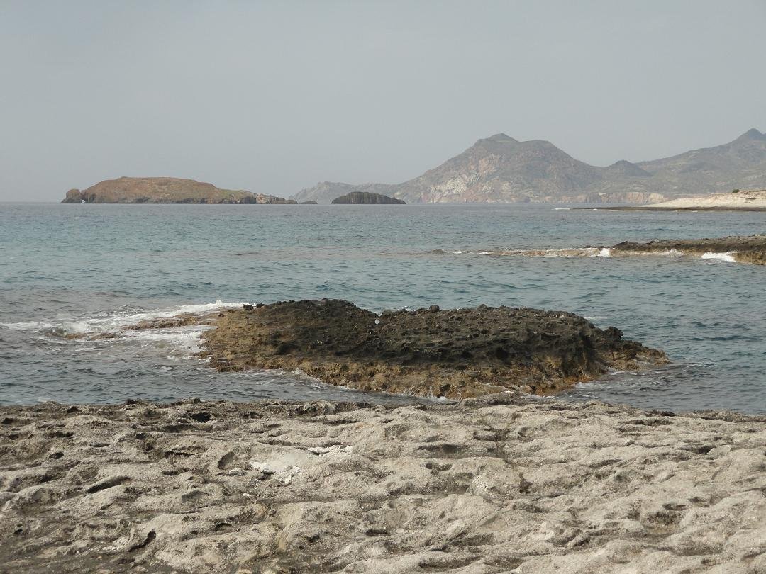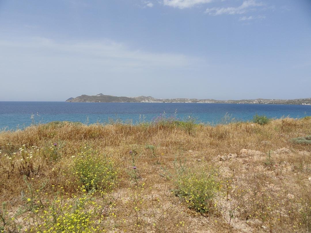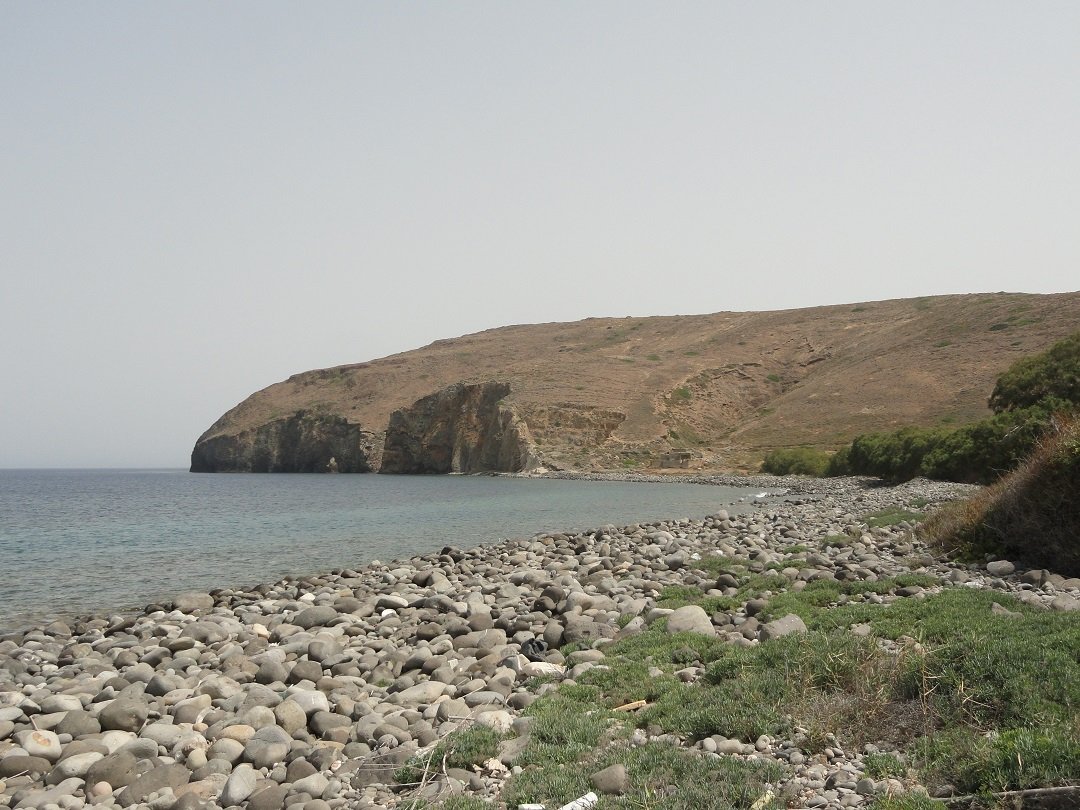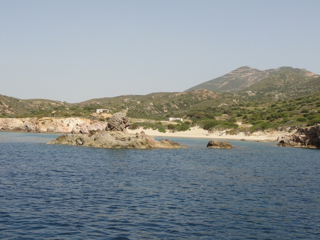 Stranden naast de opgraving van Phylakopi , tussen Phylakopi en op ongeveer 3 kilometer afstand van Pollonia. Aan beide zijden van de opgraving ligt geloof ik een strand, het ene met keien (dat overduidelijk hier op de foto staat) en aan de andere kan (volgens mij) een zandstrand dat we nog niet gezien hebben. |