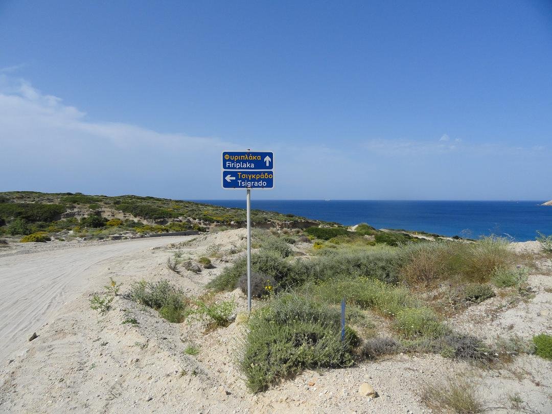 Nog een schitterend zandstrand, naast Firiplaka gelegen. Als je naar dit strand wilt, moet je dus ook het laatste stuk over een onverharde weg rijden. Het strand is omgeven door prachtige rotsen en grotten. Het schijnt dat je er kunt komen via een wat lastig zandpad. Wij hebben dat pad niet echt kunnen ontdekken en dus zijn we ook niet op het strand zelf geweest. Wat wij zagen was gewoon te stijl om te proberen, want hoe kom je weer terug? Het beste zou je dit strand dan ook met een bootje kunnen bezoeken. Tsigrado is een zandstrand dat is omgeven door hoge kliffen. In de turquoise zee voor het strand liggen een aantal rotsen in het heldere zeewater. |