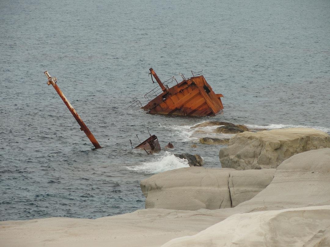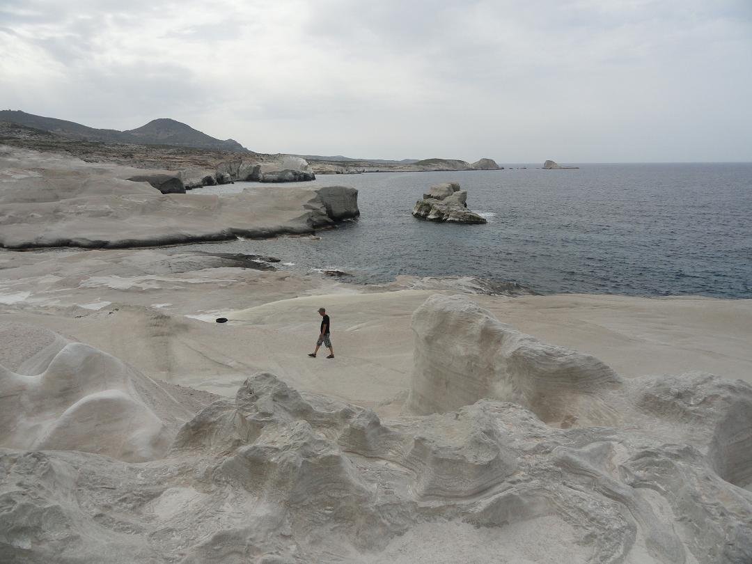 De rotsen bij Sarakiniko Beach zijn in de loop van tijd door het zeewater, de regen en de wind gladgestreken. Het contrast tussen de witheid van het rotsen en het turqoise water van de zee maakt het zeer pittoreske en dus is Sarakiniko Beach de meest gefotografeerde plek van het eiland Milos. Het is een interessant gebied om rond te lopen en te verkennen, en zelfs al heb ik mijn best gedaan om mooie foto's van Sarakiniko Beach te maken, foto's doen het geen recht: je moet het zelf zien. Op Sarakiniko strand zijn ook een paar grotten, wat rotsen in de zee en er ligt een scheepswrak van ee vrachtboot tegen de kust. |