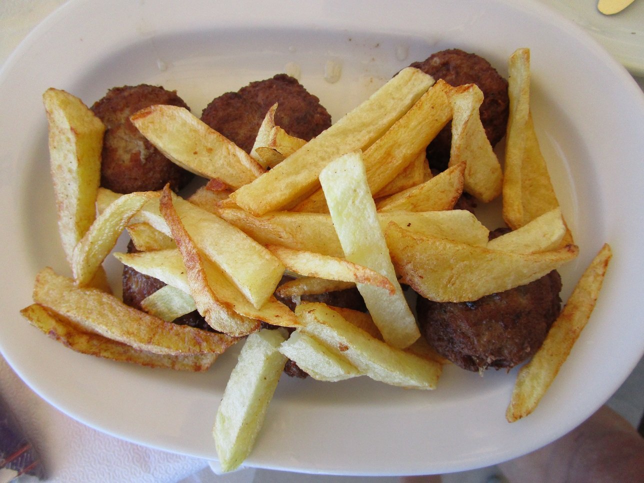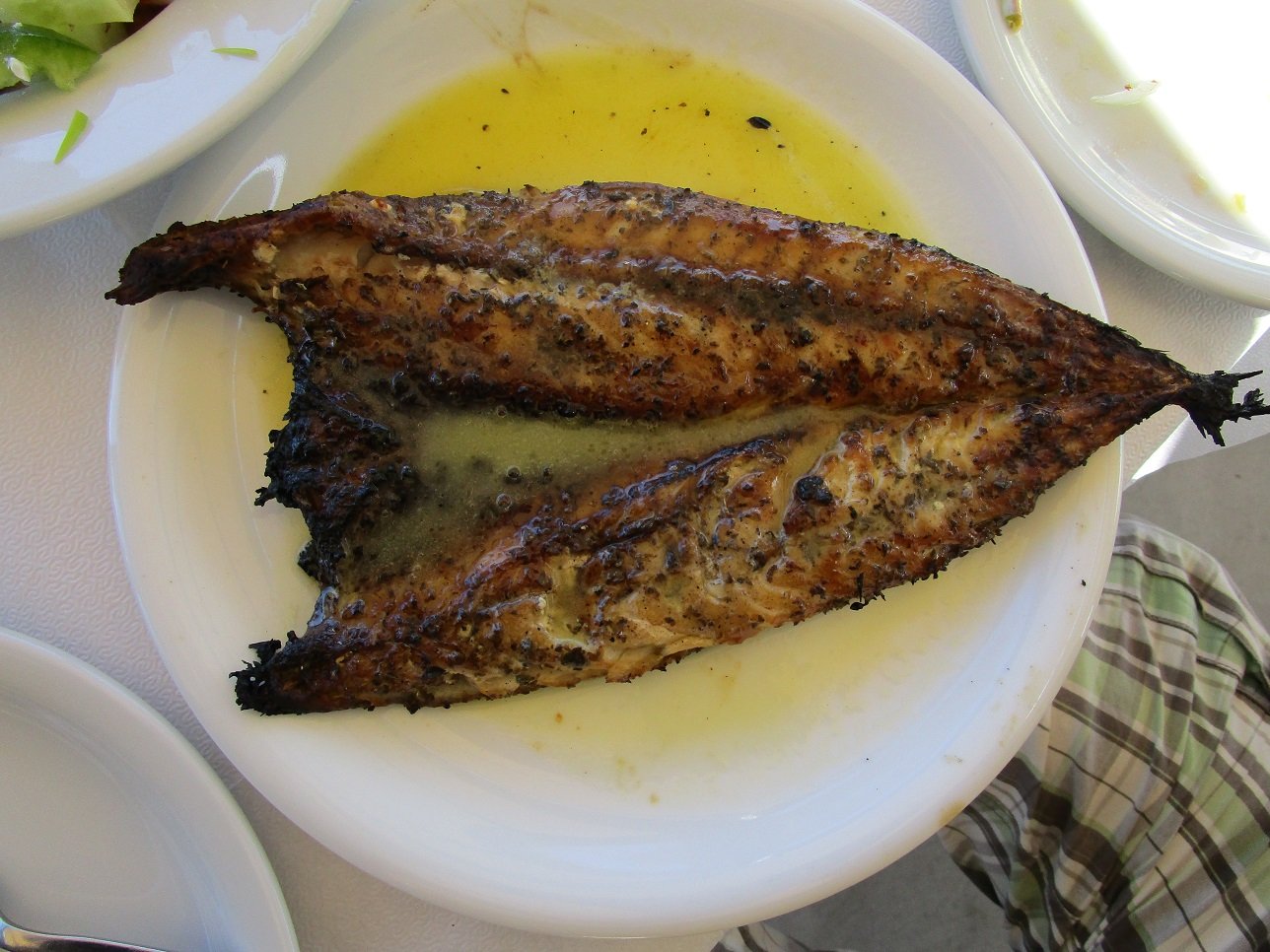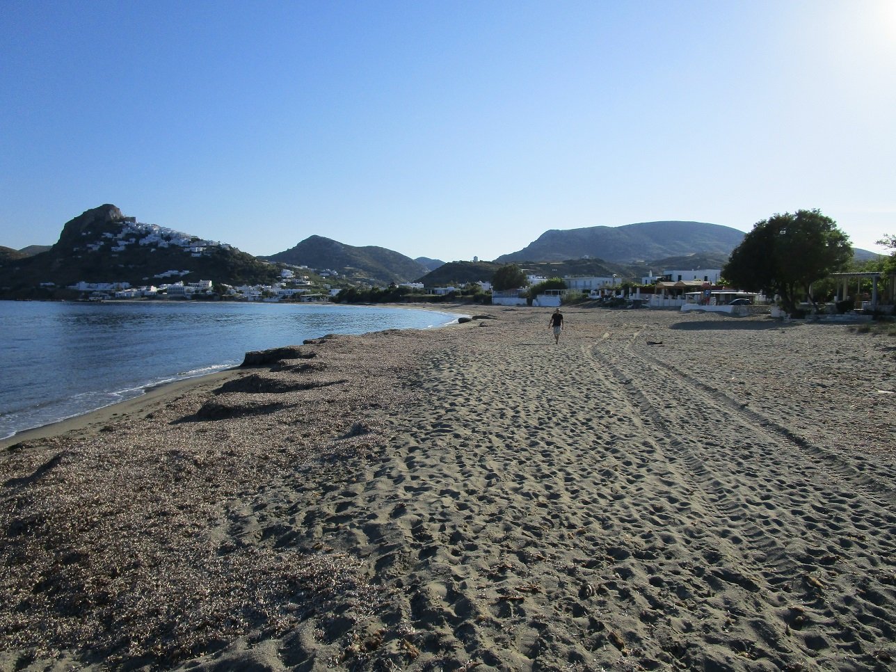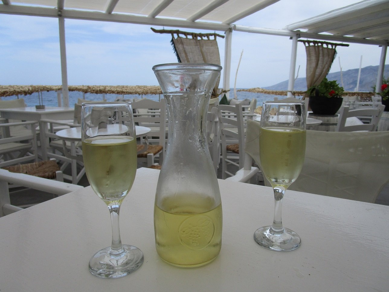Taverna Gialos is located on one of the stairs leading to the beach of Magazia. We order the salted fried fish, the meatballs, the Greek salad and half a liter of white wine. The food is simple but not distasteful and the service is friendly. Our verdict: a 6 out of 10. |