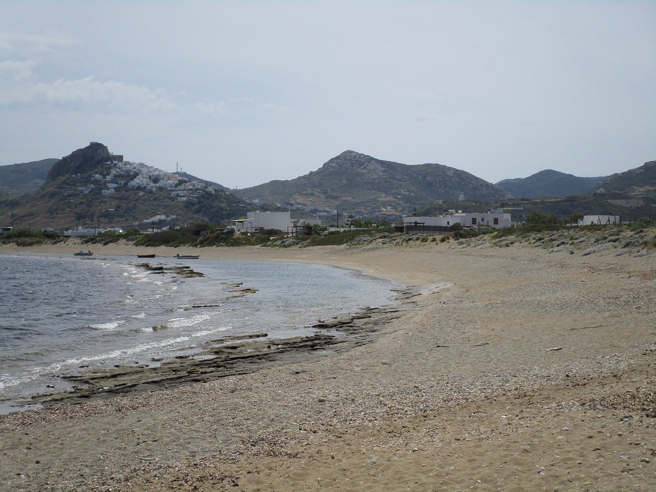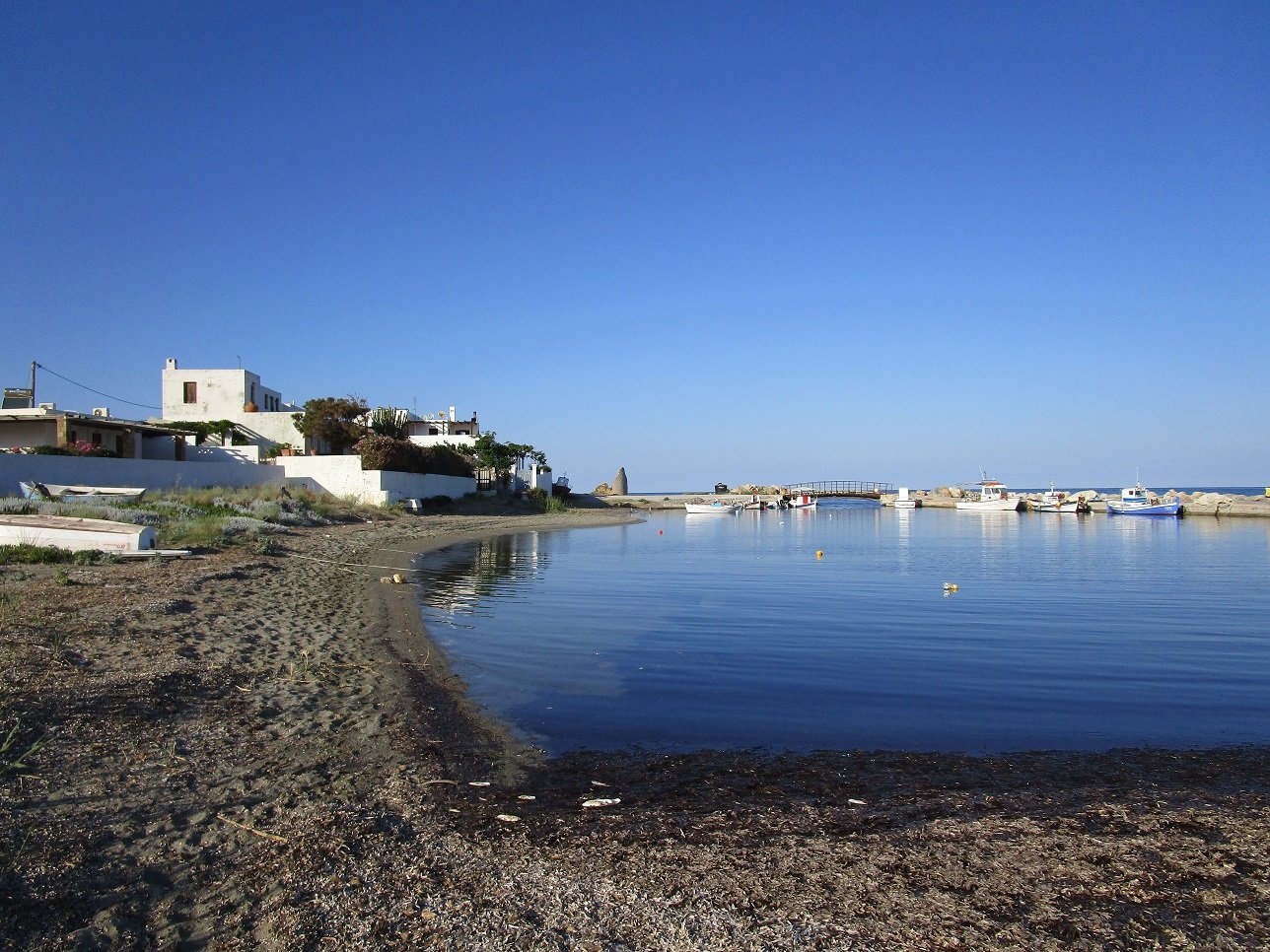 At the end of the beach of Molos are the remains of an old watchtower and there is a small harbour with a couple of wooden fishing boats. There are small and sandy coves. A little further begins the beach of Pouria, with its old stone quarry and the church of Agios Nikoloas, which is carved out into the rocks. |
