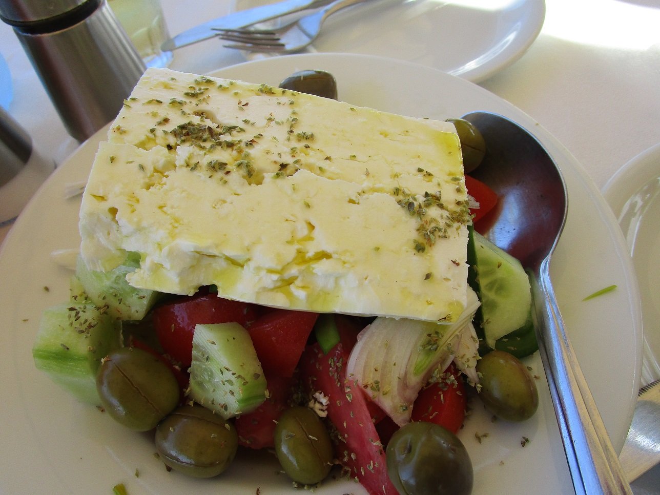 Juicy Beach Bar is located on the beach of Magazia. It is a rather large and modern eatery where trendy music is played and also a gathering place for the local youth. Juicy Beach Bar also offers beach chairs and umbrellas. We order the omelette, the Greek salad and half a liter of white wine. The food is as you expect in a commercial place, a little standard tourist food and no culinary delights. The service is very friendly though. Our verdict: a 6 out of 10. |