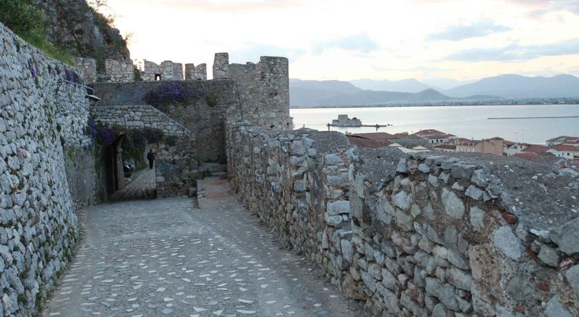 Above the town on a 216 meter high mountain stands the Palamidi fortress, which was completed by the Venetians in 1714. Already in 1715 it fell into the hands of the Turks, who had possession of it until their fall in 1822. The smaller Bourtzi fortress that stands on an island in the harbour of Nafplion dates from 1473 and was built by the Venetians to protect themselves against pirates. During the summer months there are small excursion boats that can take you to this small fortress island.