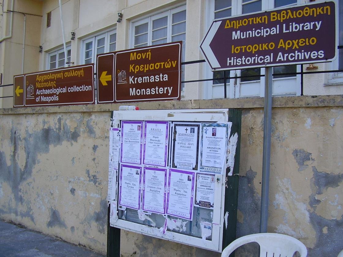Neapoli (new town) was the capital of the Lassithi prefecture until 1904 when Agios Nikolaos took over this position. On the main square, next to a park, stands the imposing and beautiful cathedral of the Virgin Mary, escorted by two big palmtrees. It stands on the spot where there used to be a Turkish mosque, which was destroyed in 1827. This church is the headquarter of the bishop. The square is the center of all the activities and somehow when you drive into Neapoli you always seem to end up here. There are a couple of Kafenions, some places where you can eat and there is a pharmacy. Signs point you to places of interest in the area and to the museums. Aside of this the Neapoli has lots of narrow streets and small shops and it feels more like a larger village than a small town.