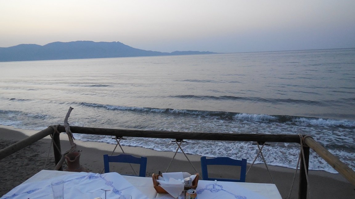 Taverne aan het georganiseerde strand van Nopigia. We bestellen een aantal kleine gerechten zoals mousaka, pittige kaas dip, courgette ballen en tzatziki. De huiswijn heeft niet veel smaak, maar de tzatziki heeft veel knoflook en de mousaka is heel lekker. Het is een mooie locatie direct aan de zee. Ons oordeel: een 8 uit 10 |