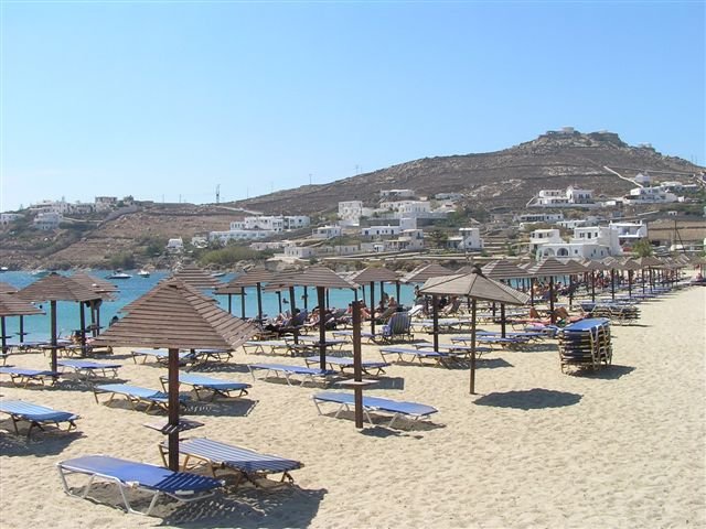 Ornos Beach is een beetje up market met wat stijl. Het strand is een lang en goed zandstrand met helder zeewater en er zijn parasols en ligbedden te huur. Het zuidelijke strand is uitstekend geschikt voor families met kinderen, want de zee is er ondiep en de bodem is zanderig. Omdat het er zo veilg is, zal het je opvallen dat er ook een flink aantal jachten hun anker uitgooien in deze beschermde baai. Het noordelijke strand is favoriet bij windsurfers. In het weekend kan het er wel druk worden, maar ja, dat geldt op Mykonos eigenlijk overal. Ornos is een goede optie voor mensen die graag direkt aan een strand zitten maar toch niet te ver van Mykonos Stad af willen zitten. Ornos heeft een regelmatige busverbinding met Mykonos Stad en een taxi is goedkoop. Je kunt ook gewoon van Ornos Beach naar Mykonos Stad wandelen als je dat wilt. Ornos is ook een van de twee startpunten (naast Platis Gialos) van de kleine houten bootjes die de ketting van stranden in het zuiden van het eiland aandoen. Zoek naar beschikbare hotels, appartementen en studio's op Ornos Beach op Mykonos - klik hier. |